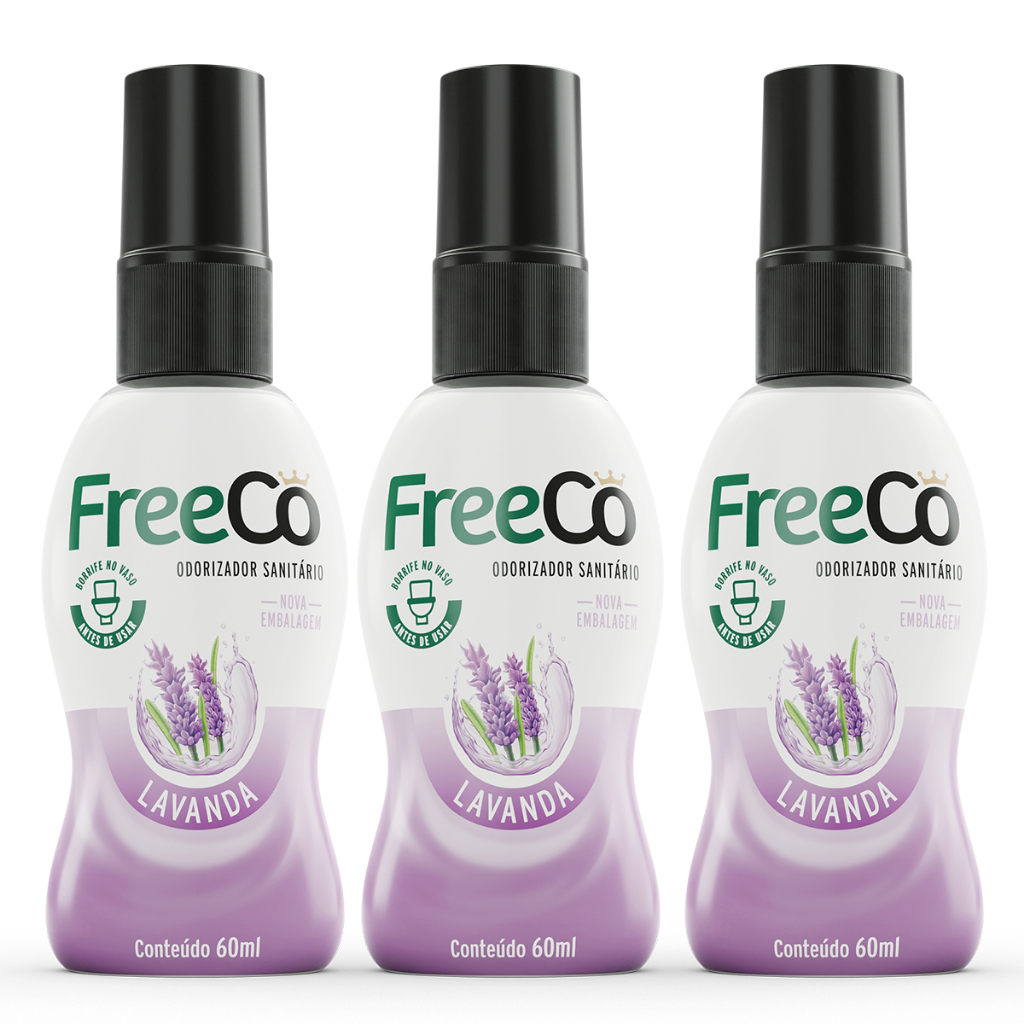 Somos a Loja Oficial FreeBrands! Caixa com 12 unidades, são 3 fragrâncias de cada (capim limão, lavanda, tutti frutti e especiarias), FreeCô é 1º bloqueador de odores sanitários do Brasil, eliminando de forma definitiva o mau cheiro do nº2 e também o constrangimento em utilizar o banheiro. FreeCô veio para acabar com cheirão e com o medo do Nº 2. Afinal de contas, é pioneiro no seu segmento. Não é aerossol, é um produto natural feito com princípios ativos de óleos essenciais fitoterápicos, portanto, não faz mal à saúde nem ao meio ambiente. Portátil, pode ser levado na bolsa, no bolso ou onde você quiser. O segredo do sucesso é que ele elimina de forma definitiva o constrangimento em utilizar o banheiro. Sua apresentação em frascos com 60 ml é ideal para levar no bolso, na bolsa, nécessaire, pasta ou mochila. FreeCô chegou para eliminar um dos principais motivos de bullying, constrangimentos e humilhações no trabalho, na escola, em casa, nos relacionamentos afetivos ou entre os amigos. FreeCô bloqueia o cheiro do sanitário quando utilizado de forma correta. Mas como funciona? FreeCô cria uma capa na superfície da água que neutraliza o mau cheiro antes mesmo de ser percebido. INSTRUÇÕES DE USO: - Posicione o frasco na altura da tampa do sanitário com o borrifador voltado para a água. - Borrife 5 vezes para criar uma barreira protetora de óleos naturais. - Desfrute do aroma agradável do FreeCô enquanto os odores indesejados desaparecem. Saiba como NÃO usar FreeCô: - Não usar FreeCô depois de fazer o Nº 2 - Não usar FreeCô borrifando no ar - Não usar FreeCô de qualquer outra forma que não seja na água do vaso sanitário BENEFÍCIOS Tecnologia Avançada: Fórmula cientificamente desenvolvida para neutralizar odores antes mesmo que eles se espalhem pelo ar. Fácil de Usar: Com instruções simples, basta borrifar 5 vezes o FreeCô na água antes de usar o vaso, criando uma barreira protetora natural. Portátil: O frasco compacto de 60 ml é conveniente para transportar e manter em qualquer banheiro. Econômico: Com apenas algumas borrifadas, o FreeCô oferece resultados poderosos, tornando-o econômico e de longa duração, até 100 usos (frasco de 60 mL). Bem-Estar Garantido: Livre-se das preocupações com odores constrangedores e desfrute de um banheiro sempre fresco e agradável. FreeCô possui o selo vegano da Sociedade Vegetariana Brasileira após passar por todas as etapas que comprovam que o produto não possui ingredientes de origem animal e muito menos realiza teste em animais. Validade de 36 meses após a fabricação, todos os nossos frascos foram produzidos recentemente. Experimente a inovação em bloqueio de odores com o Desodorizador Sanitário FreeCô. Garanta frescor e conforto para seu banheiro. Borrife, use e sinta a diferença!