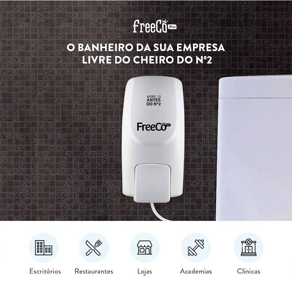 Somos a Loja Oficial FreeBrands! Todos os nossos produtos são encaminhados junto com a nota fiscal. Refil FreeCô Pro 500ml Original Fragrância Capim Limão O QUE TEM NA CAIXA 1 Refil de 500ml. FreeCô Pro é a solução definitiva contra o mau cheiro provenientes dos vasos sanitários. Por quê? - Bloqueia o cheiro do Nº 2 - Uso do banheiro da empresa sem constrangimento - Mais eficiente que borrifadores de ambiente - Elimina 99% das bactérias do vaso sanitário Tenha um ambiente de trabalho mais agradável com muito mais economia. FreeCô é 1º bloqueador de odores sanitários do Brasil, eliminando de forma definitiva o mau cheiro do nº2 e também o constrangimento em utilizar o banheiro. Esta versão com fragrância de Capim-Limão de 500 ml é ideal o banheiro de: - Academias - Clínicas - Escritórios - Lojas - Restaurantes - Estabelecimentos comerciais em geral FreeCô Pro veio para acabar com cheirão e com o medo do Nº 2. Afinal de contas, é pioneiro no seu segmento. Não é aerossol, é um produto natural feito com princípios ativos de óleos essenciais fitoterápicos, portanto, não faz mal à saúde nem ao meio ambiente. O segredo do sucesso é que ele elimina de forma definitiva o constrangimento em utilizar o banheiro. FreeCô Pro bloqueia o cheiro do sanitário quando utilizado de forma correta. Veja como funciona: FreeCô Pro cria uma capa na superfície da água que neutraliza o mau cheiro antes mesmo de ser percebido. INSTRUÇÕES DE USO: 1- É só apertar 2 vezes antes do Nº 2 2 - Óleos naturais criam uma barreira que envolve o Nº 2. O odor não passa e sua empresa fica livre do constrangimento. Saiba como NÃO usar FreeCô: - Não usar FreeCô depois de fazer o Nº 2 - Não usar FreeCô de qualquer outra forma que não seja na água do vaso sanitário BENEFÍCIOS Tecnologia Avançada: Fórmula cientificamente desenvolvida para neutralizar odores antes mesmo que eles se espalhem pelo ar. Fácil de Usar: Com instruções simples, basta apertar 2 vezes o FreeCô Pro antes de usar o vaso, criando uma barreira protetora natural. Econômico: Com apenas 2 acionamentos por uso, o FreeCô Pro oferece resultados poderosos, tornando-o econômico e de longa duração, o refil de FreeCô Pro 500ml dura em média 500 acionamentos. Bem-Estar Garantido: Livre-se das preocupações com odores constrangedores e desfrute de um banheiro sempre fresco e agradável. FreeCô Pro possui o selo vegano da Sociedade Vegetariana Brasileira após passar por todas as etapas que comprovam que o produto não possui ingredientes de origem animal e muito menos realiza teste em animais. Validade de 36 meses após a fabricação, todos os nossos frascos foram produzidos recentemente. Experimente a inovação em bloqueio de odores com o Desodorizador Sanitário FreeCô Pro. Garanta frescor e conforto para o banheiro do seu trabalho com a refrescante fragrância de Capim-Limão. Use e sinta a diferença! PERGUNTAS E FREQUENTES Quanto tempo dura um refil? O refil de FreeCô Pro dura em média 500 acionamentos. Qual a diferença entre o FreeCô Pro e o Freecô Frasco? A diferença está na economia. FreeCô Pro é indicado para empresas e estabelecimentos comerciais devido à alta rotatividade nos banheiros, bem maior do que em residências. Além disso, o FreeCô Pro é constituído por um dispenser fixo com suporte para a troca do refil FreeCô Pro 500 mL, o acionamento dispensa o FreeCô diretamente na água do vaso sanitário. Posso comprar para minha casa? Pode. Contudo, FreeCô Pro é indicado para banheiros com alta rotatividade de usuários.