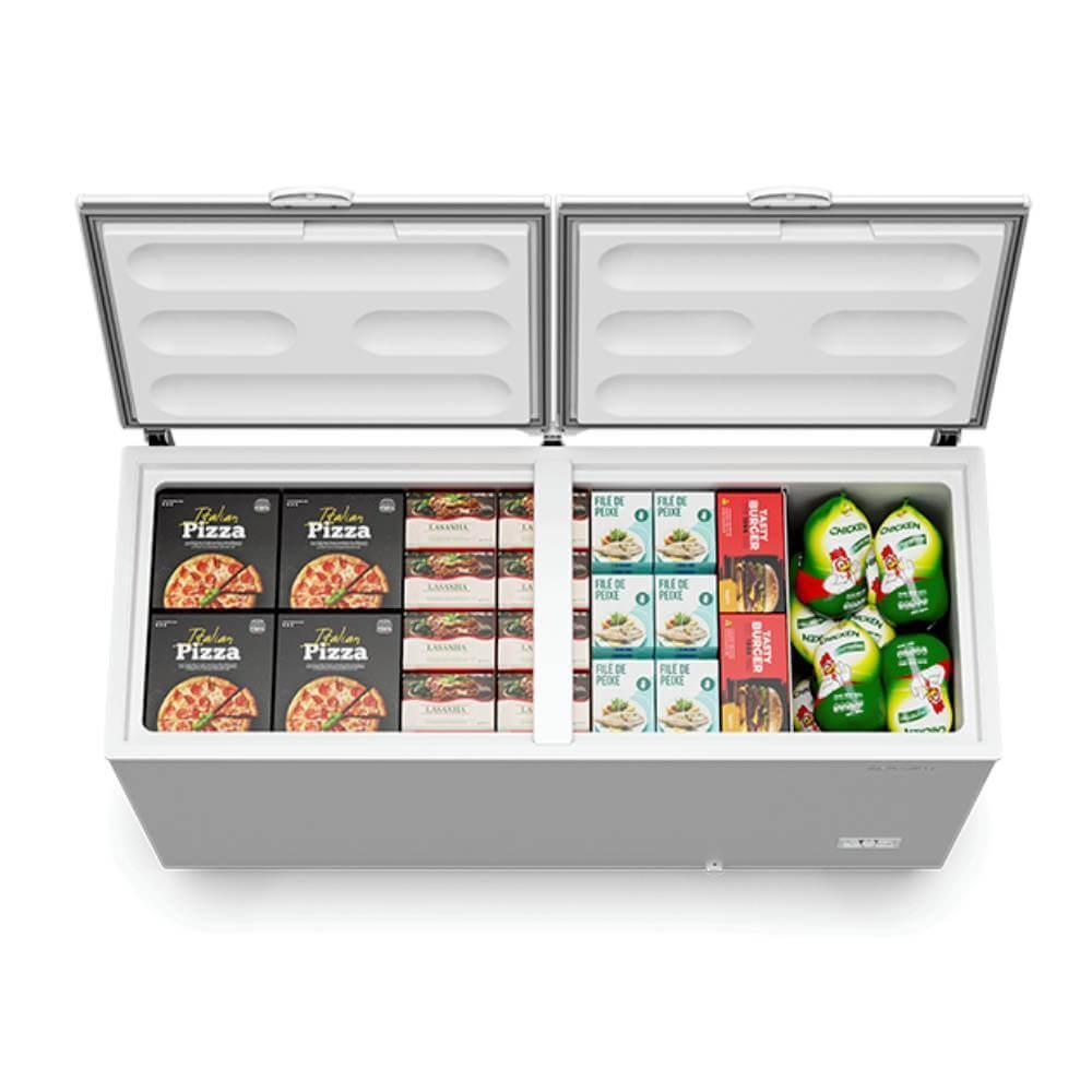 Freezer Horizontal Inverter 2 Tampas Metalfrio Dupla Ação 546 Litros DA550IF Branco - BivoltUma excelente escolha para quem busca eficiência, alta capacidade e confiabilidade no armazenamento de alimentos e bebidas. Com design funcional e acabamento clean, ele se adapta facilmente a diferentes ambientes, oferecendo ótima visibilidade e organização interna. A tecnologia Inverter contribui para um funcionamento mais estável, ajudando a manter a temperatura adequada com menor variação térmica. Com ampla capacidade de 546 litros, este freezer horizontal atende demandas maiores de estocagem, permitindo acomodar diversos tipos de produtos com praticidade. O sistema de dupla ação amplia a versatilidade de uso, possibilitando diferentes configurações de refrigeração conforme a necessidade. As duas tampas superiores facilitam o acesso aos itens armazenados e auxiliam na conservação do frio interno, reduzindo a troca de calor com o ambiente externo. Outro destaque importante é o funcionamento bivolt, que oferece maior flexibilidade na instalação. A estrutura robusta do Freezer Horizontal Metalfrio DA550IFT01 foi projetada para garantir durabilidade e desempenho contínuo, mesmo em situações de uso intenso. Combinando tecnologia, espaço interno e praticidade, este modelo se apresenta como uma solução eficiente para quem valoriza desempenho, economia e organização no armazenamento refrigerado.
