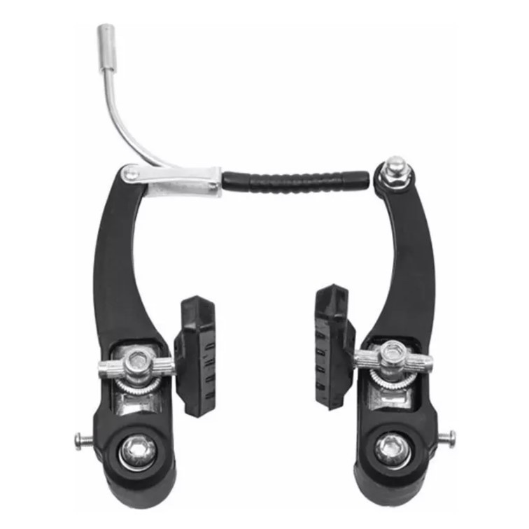 Freio V-brake de Nylon Dianteiro e Traseiro com Maçaneta e Cabos O freio V-brake nylon acompanha maçaneta, cabos e conduíte, proporcionando uma frenagem eficiente para sua bicicleta. Conteúdo do kit: - 04 Hastes de freio V-brake (02 dianteiras e 02 traseiras) - 01 Par de maçanetas MTB nylon com regulador de alumínio e ajuste de altura - 01 Cabo dianteiro - 01 Cabo traseiro - 01 Conduíte dianteiro - 01 Conduíte traseiro - 04 Sapatas de freio 60 mm com pino (acopladas nas hastes dos freios) - 04 Parafusos para fixação dos freios - 04 Arruelas - 02 Sanfonas - 02 Guias de cabo de alumínio Composição: aço, nylon e borracha