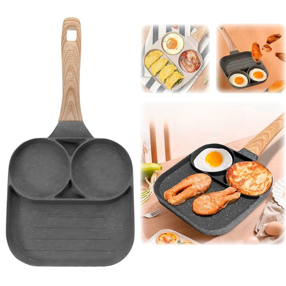 Frigideira 3 Em 1 De Alumínio Antiaderente Sem Uso De óleo Multiuso Ovo Hamburguer Bacon - Preto