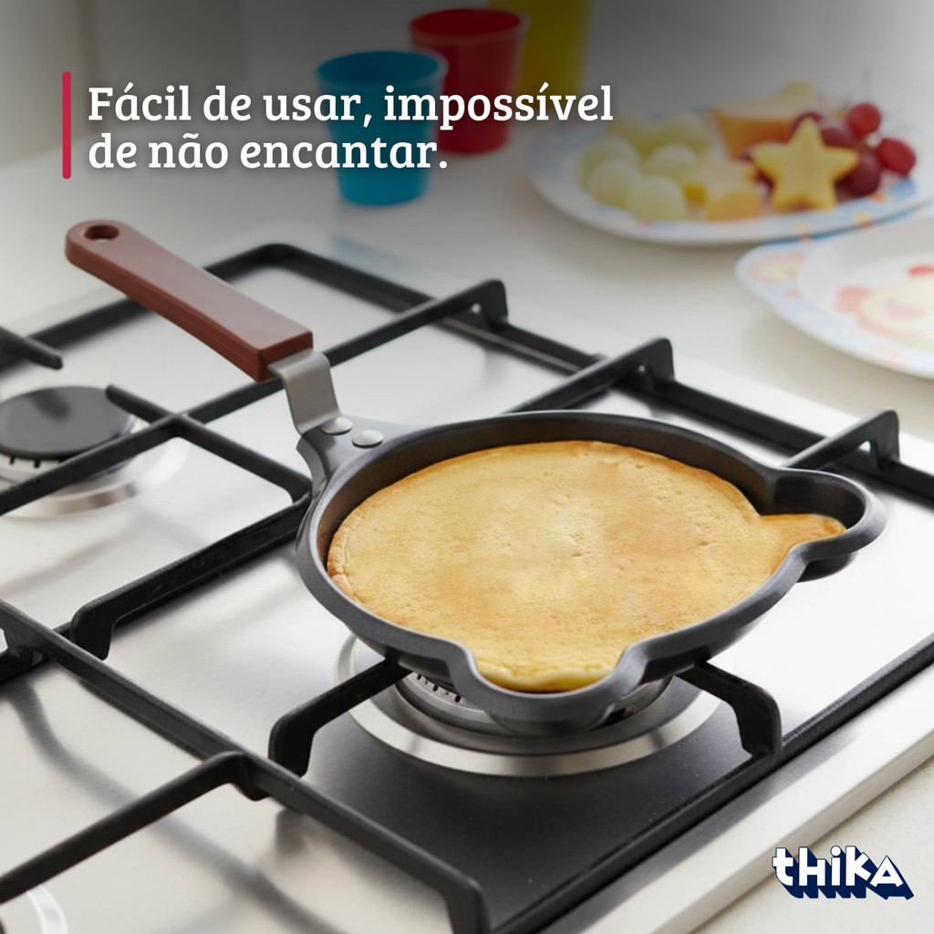 Transformar o preparo das refeições em um momento leve e cheio de sorrisos é a proposta da Frigideira Iron Max Animals. Com um design criativo em formato de bichinho, ela desperta o interesse das crianças e torna o café da manhã ou o lanche muito mais convidativo, criando memórias afetivas em família enquanto a comida ganha um toque divertido no prato. Ideal para quem gosta de cozinhar com carinho, essa frigideira antiaderente facilita o preparo de receitas como ovos, panquecas e lanches rápidos, evitando que os alimentos grudem e garantindo praticidade no dia a dia. Pensada para acompanhar diferentes rotinas na cozinha, é compatível com fogões modernos, funcionando como uma eficiente frigideira de indução, além de proporcionar aquecimento uniforme que ajuda no preparo perfeito dos alimentos. A proposta lúdica transforma cada refeição em um momento especial, tornando esta frigideira para panqueca divertida uma aliada para estimular as crianças a se alimentarem melhor, enquanto os adultos aproveitam a funcionalidade e a durabilidade do produto. Seu uso é simples e seguro, permitindo mais tranquilidade durante o preparo, mesmo nos momentos mais movimentados da casa. Um item que une funcionalidade, emoção e diversão, perfeito para quem valoriza momentos em família e gosta de inovar na cozinha. Descubra como cozinhar pode ser ainda mais prazeroso e envolvente. Ficha técnica Medidas e dimensões: Altura: 3cm | Largura: 15cm | Comprimento: 28cm Material do corpo: Alumínio Material da alça/cabo: Baquelite Marca: Thika Fabricante: Thika Garantia: 90 dias Composição 01x Frigideira Iron Max Animals