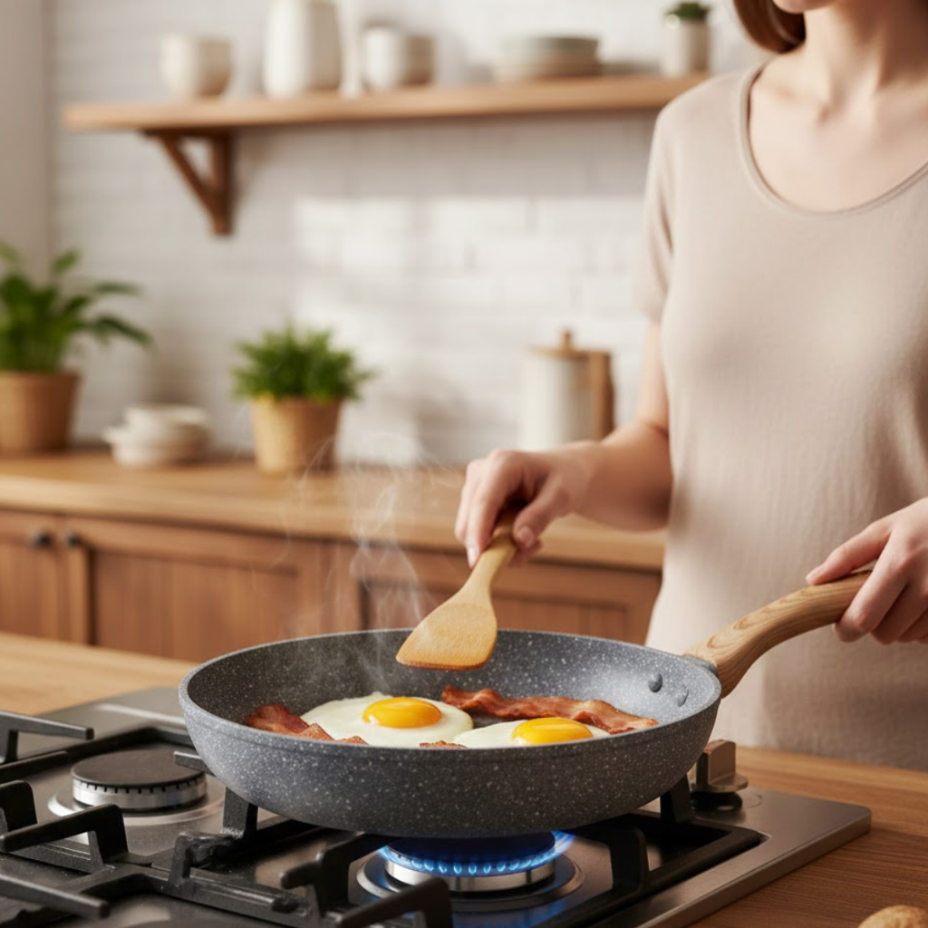 ✅ ENVIO IMEDIATO | PRODUTO À PRONTA ENTREGA 🍳 Frigideira de Granito Antiaderente – Cozinhe com mais sabor e menos óleo Se você busca praticidade, saúde e eficiência na cozinha, a frigideira com revestimento em granito é a escolha certa. Desenvolvida para facilitar o preparo das refeições, ela permite cozinhar com mínima ou nenhuma quantidade de óleo, sendo perfeita para receitas do dia a dia, dietas equilibradas e preparos rápidos. O revestimento antiaderente de alta qualidade garante que os alimentos não grudem, proporcionando um cozimento uniforme e muito mais conforto no uso. ⭐ Principais Diferenciais ✔ Revestimento em granito antiaderente de alta performance ✔ Ideal para receitas fitness e preparos com menos gordura ✔ Distribuição uniforme do calor ✔ Não gruda e não queima facilmente ✔ Fácil de lavar e manter no dia a dia ✔ Design moderno e funcional 🔥 Compatibilidade Funciona perfeitamente em: Fogão a gás Fogão elétrico Fogão vitrocerâmico compatível com indução 📏 Medida Frigideira Diâmetro: 20 cm Cabo: 16 cm Espessura: 4 mm 👉 Escolha o tamanho desejado na variação do anúncio. 🍽️ Benefícios no Uso ✨ Ideal para frituras, grelhados e receitas rápidas ✨ Cozinha mais saudável, com menos óleo ✨ Preserva o sabor e a textura dos alimentos ✨ Ótima opção para uso diário