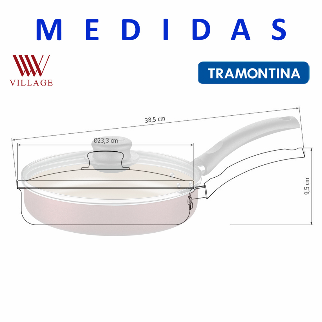 <><><><><><><><<><><><><><><<><><><><><> *SOMOS REVENDA AUTORIZADA TRAMONTINA* <><><><><><><><><><><><><><><><><><><><> Frigideira Reta Tramontina Turim em Alumínio com Revestimento Antiaderente Starflon Max Vermelho com Tampa de Vidro 22cm 1,7L DESCRIÇÃO A Frigideira Reta Tramontina Turim em Alumínio com Revestimento Antiaderente Starflon Max Vermelho com Tampa de Vidro 22 cm de diâmetro 1,7 L leva mais charme e bom gosto para dentro da sua casa. Na cor vermelha, ela embeleza ainda mais sua cozinha! É produzida em alumínio com revestimento interno e externo antiaderente Starflon Max, que permite um cozimento mais rápido, uniforme e evita que os alimentos grudem em sua superfície. Ela acompanha tampa de vidro temperado com saída de vapor e borda de aço inox, que facilita e permite a visualização das receitas durante o preparo. Ela ainda preza pelo conforto e segurança, pois o cabo é em baquelite antitérmico e o pegador em nylon, ambos materiais que reduzem a propagação do calor. A frigideira reta conta com 22 centímetros de diâmetro e é muito versátil, podendo ser utilizada em fogões a gás, elétricos e vitrocerâmicos (resistência elétrica) e levada à máquina de lavar louças. INFORMAÇÕES GERAIS Corpo de alumínio com espessura de 1,8 mm que proporciona cozimento rápido e uniforme. Revestimento interno e externo de antiaderente Starflon Max que não gruda, é fácil de limpar, mais durável e não é prejudicial à saúde. Tampas de vidro temperado, com saída de vapor e bordas de aço inox. Cabo de baquelite antitérmico e pegador de nylon que oferecem segurança durante o manuseio. Pode ir à máquina de lavar louças facilitando seu dia a dia. RECOMENDAÇÕES DE USO A capacidade volumétrica máxima para cozimento é de 3/4 da capacidade total da peça. Posicione os cabos dos utensílios voltados ao centro do fogão. Em fogões com grade, centralize a peça e alinhe o cabo com a grade. Utensílios quentes devem estar fora do alcance das crianças. Este produto não pode sofrer modificações. Antes do primeiro uso, lave com esponja macia, sabão neutro ou detergente líquido. Depois de secar, unte a área interna com óleo ou gordura e leve ao fogo por um ou dois minutos. Deixe esfriar e lave novamente. Seu utensílio Starflon está pronto para uso com ou sem gordura, sempre em fogo baixo ou médio (nunca superior a 350ºC). Para mexer os alimentos use somente utensílios de silicone, nylon ou madeira. Com o uso, o pegador pode afrouxar devido à dilatação normal dos materiais. Reaperte apenas o suficiente, sem forçar. Limpeza: Evite a imersão do utensílio quente em água fria. Nunca utilize produtos abrasivos na lavagem. Se deixar queimar alimentos, umedeça a área e reserve até que possa remover os resíduos grudados com esponja e sabão. Para descarte dos produtos e embalagens siga as orientações de reciclagem vigentes. -Nossa loja é reconhecida pela excelente qualidade dos produtos e cordialidade no atendimento. -O foco, o compromisso e o respeito com os clientes sempre foram o objetivo da nossa empresa. -Seu produto vai bem protegido e embalado com todo o carinho e atenção. - Aguardamos sua compra! Atenciosamente VILLAGE E-COM