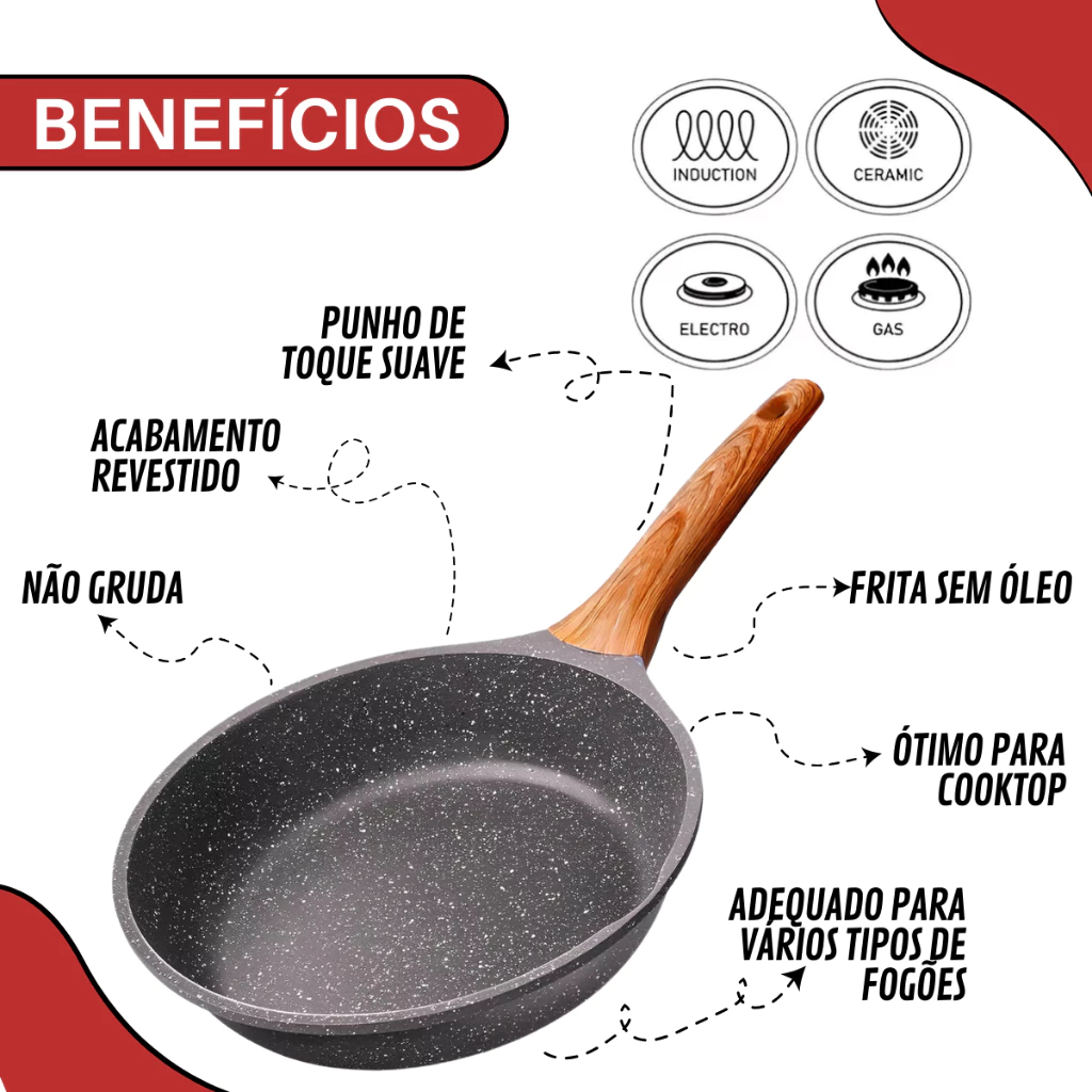 Frigideira Cerâmica Antiaderente • Para Fogão Cooktop, Indução e Gás • Cozinha Sem Óleo