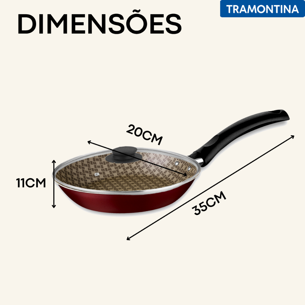 Frigideira com tampa tramontina antiaderente 20cm vermelha