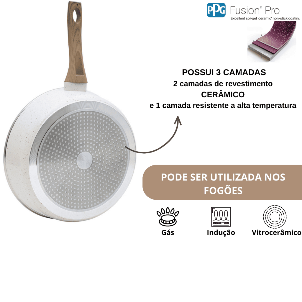 Frigideira Funda com Tampa Panela Wok 28cm Antiaderente Cerâmica Cooktop Fogão Indução