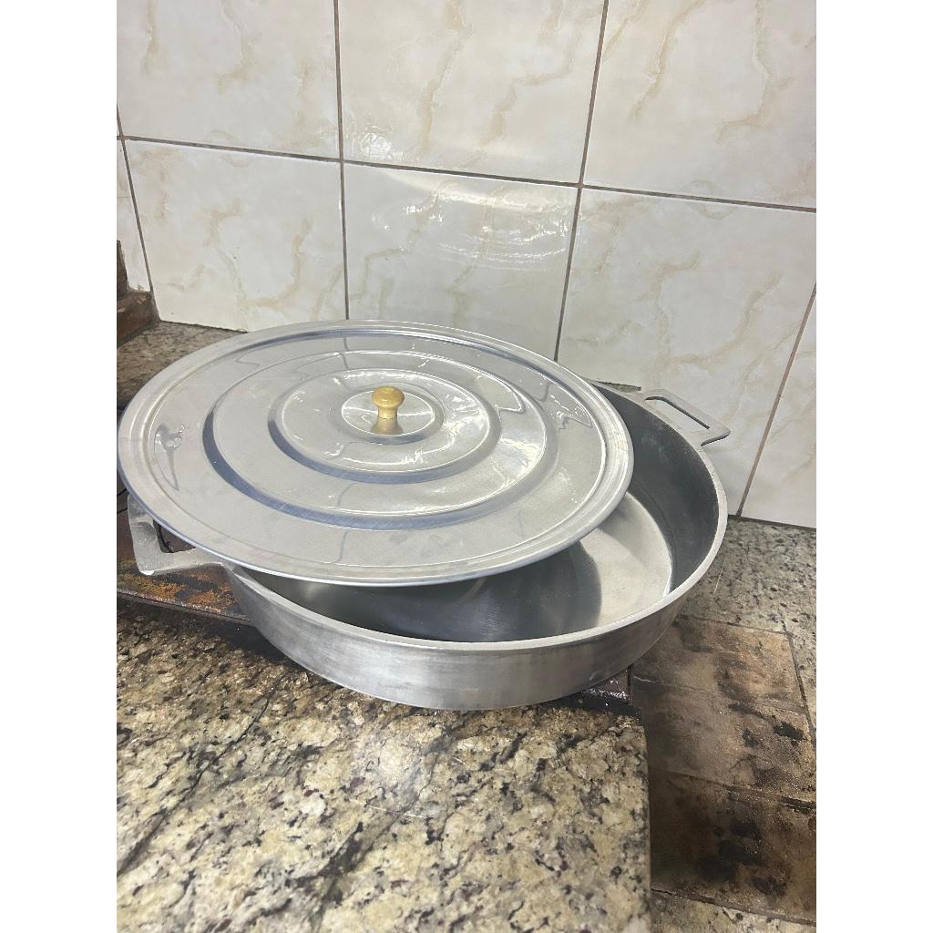 Frigideira Grande De Alumínio Batido Fundido Grossa Nº45cm de diâmetro Duas alças facilitando o manuseio - O alumínio fundido e muito conhecido pela sua durabilidade por ter uma espessura grossa evita queimar os alimentos. ESPECIFICAÇÕES: Diâmetro: 45 cm Altura: 09 cm Capacidade: 10 Litros Tampa : alumínio polida ou craqueada