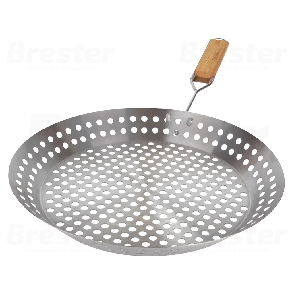 Frigideira Grelha Churrasco 30,5 Cm Inox Para Churrasqueira Mor Qualidade
