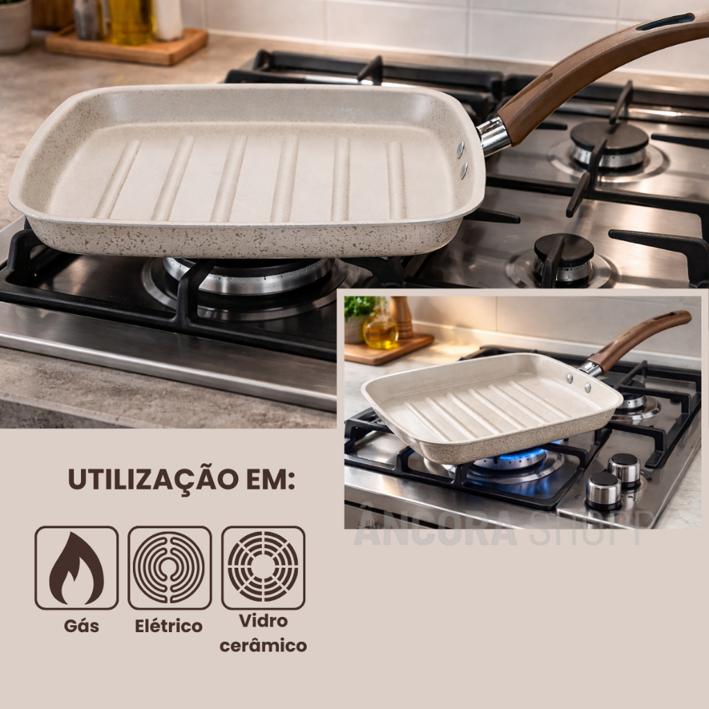 Frigideira Grill 1,1L em Alumínio MTA Branco Pérola Bifeteira Anti Aderente 26x26x41Cabo Térmico