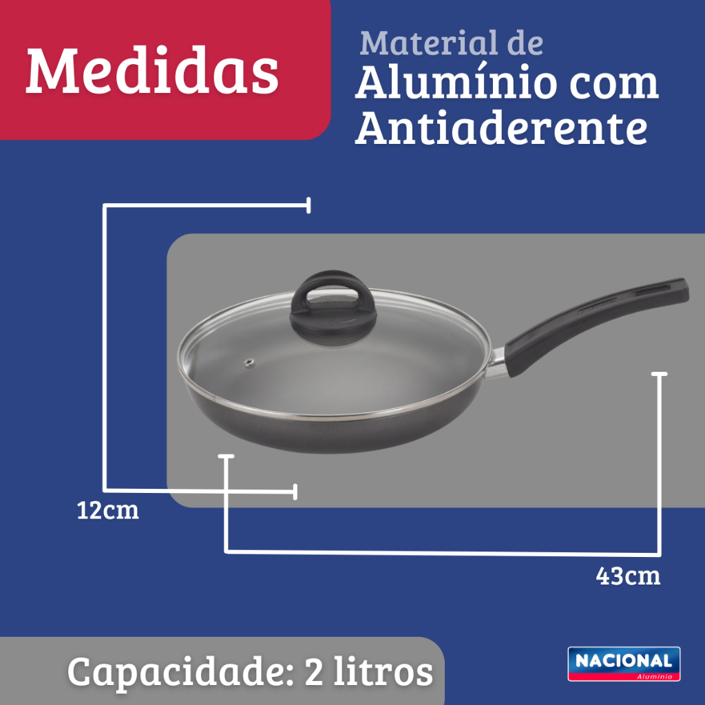 Frigideira Italiana Antiaderente com Tampa de Vidro 26 cm A Frigideira Italiana você encontra o melhor quando se trata de fritar, empanar, cozinhar e preparar alimentos, com o diferencial: a tampa pensada especialmente para deixar o ar entrar, que é essencial, ao mesmo tempo que evita respingos de óleo no seu fogão. A versão italiana tem seu diferencial design projetado especialmente para frituras e acabamento antiaderente é o que garante que seu prato saia perfeito. Este utensílio promete facilitar a sua vida, tornando as tarefas da cozinha mais simples e prazerosas para que você possa aproveitar seu dia e sua família. Informações Adicionais: - Produzida em Alumínio com revestimento antiaderente Techflon em 5 camadas - Os alimentos não grudam. - Fácil de limpar. - Cabo de baquelite antitérmico. Resistentes ao calor, proporcionando maior segurança no manuseio. - Design diferenciado e moderno. Uso Seguro e Adequado: Ao utilizar utensílios quentes, tenha cuidado redobrado. Se necessário, utilize proteção para as mãos e mantenha-os fora do alcance das crianças. Para sua maior segurança, ao utilizar utensílios com cabos, mantenha os sempre voltados para o centro do fogão. Instruções De Uso: Os utensílios com antiaderente Techflon terão maior durabilidade se as instruções abaixo forem seguidas. Antes de Usar: Lave interna e externamente o utensílio, usando apenas uma esponja macia, sabão neutro ou detergente líquido. Enxugue bem com um pano seco e unte as partes internas com óleo ou gordura. Leve ao fogo baixo por um ou dois minutos. Deixe a peça esfriar, lave e enxugue. Durante o Uso: Evite esquentar demais o utensílio vazio. Use o seu utensílio sempre em fogo baixo ou médio para reter o valor nutritivo dos alimentos e conservar o antiaderente. Os utensílios com antiaderente não podem ser aquecidos a temperaturas superiores a 350C. Para mexer ou tirar o alimento, use somente utensílios de nylon ou silicone. Nunca corte alimentos diretamente no revestimento antiaderente. Limpeza: Evite a imersão do utensílio quente em água fria. Deixe o utensílio esfriar antes de lavar. Mesmo depois de vários usos nunca utilize produtos abrasivos na lavagem, como saponáceos ou palhas de aço. Se deixar queimar alimentos, deixe seu produto de molho em água durante algum tempo antes de lavá-lo, assim terá ao produto com o antiaderente sempre conservado. Dimensões aproximadas; Altura: 4,4 cm Diâmetro: 26 cm Comprimento: 43 cm Capacidade: 2 Litros Disponível nas cores: Cereja e Grafite