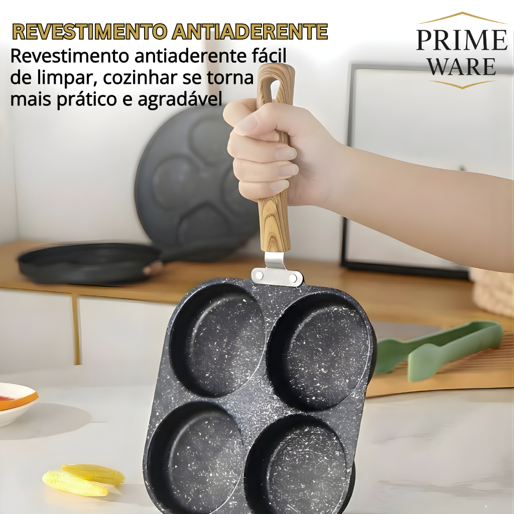 Frigideira Multifuncional Antiaderente 4 Em 1 Para Ovos, Hambúrguer e Omelete com Cabo De Madeira