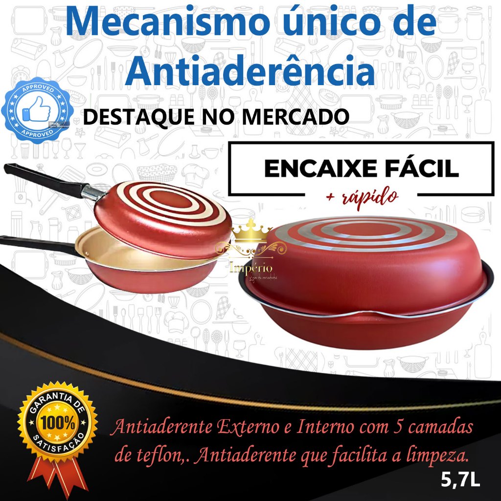 “Confira nossa loja” Temos outros modelos e tamanhos. Mega Império variedades Tenha a tranquilidade de comprar com quem está disposto a te oferecer, o melhor suporte e atendimento de excelência. Nossa equipe de pós venda está à disposição para te auxiliar e esclarecer eventuais dúvidas. Recomendamos que leia o detalhamento da oferta e a descrição do produto desejado. Omeleteira , versáteis, incrivelmente charmosas e com design arrojado. O diferencial está e seu sistema que pode ser uma omeleteira ou 2 frigideiras. Seu material, alumínio de alta qualidade, espessura de 1,1 mm, que confere ao item uma estrutura resistente garantindo a durabilidade e distribuição eficiente do calor, proporcionando o cozimento mais rápido e uniforme dos alimentos. Revestido com 5 camadas de antiaderente TEFLON (DuPont) - PFOA Free, internamente e externamente, evitando que o alimento grude na superfície, o que possibilita o preparo dos alimentos com menos gordura, além de proporcionar praticidade no momento da limpeza. Possui cabo feito em baquelite, um material antitérmico, que não retém calor, contribuindo para um manuseio mais confortável e seguro. Além disso, a frigideira acompanha uma linda Espátula, ideal para a conservação do seu produto, afinal os pequenos cuidados fazem toda a diferença! Especificações Técnicas: Dimensões aproximadas - cm: (Altura x Largura x Comprimento - Capacidade volume): - 1 Omeleteira – 8 x 20 x 35 cm - 2L Material: - Alumínio Revestido - Revestimento Externo: Antiaderente – Cor Cereja - Revestimento Interno: Antiaderente – Cor Dourado - Espessura Material: 1,1 mm - Cabo: Baquelite - Peso Frigideira: 207 g - Peso Embalagem - Caixa Parda: 120 g - Dimensões aproximadas da embalagem (AxLxP): 40 x 27,5 x 8,5 cm - Embalagem: Saco Plástico / Caixa Parda - Recomendações: Antes do primeiro uso é necessário realizar a limpeza e a cura do item, imprescindível para durabilidade e proteção da camada antiaderente. Lave com esponja macia e detergente neutro, seque-a com um pano limpo. Unte a parte interna com óleo ou outra gordura e leve-a ao fogo baixo por 1 minuto. Deixe-a esfriar, lave, enxugue e está pronta para utilizar. Cuidados: - Mantenha o produto sobre a chama do fogão apenas o necessário para o cozimento, sempre em fogo baixo ou médio (nunca superior a 350°C). - Para mexer os alimentos use somente utensílios de silicone ou nylon; - Não exponha as alças e cabos diretamente ao fogo ou fonte de calor prolongado; - Não pode ser levada ao forno e/ou microondas; - Evite a imersão do produto quente em água fria. Sempre o deixe esfriar antes de lavar Detalhes: - Fabricante Marcolar possui 50 anos de experiência no mercado de alumínio, entregando produtos com qualidade aos clientes. (Garantia 30 dias contra defeitos de fabricação) - Itens decorativos não acompanham o produto. Imagens meramente ilustrativas - Para descarte dos produtos e embalagens siga as orientações de reciclagem vigente.