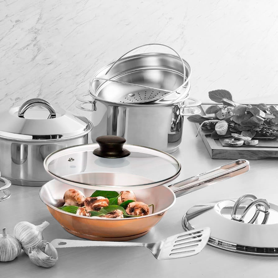 Descrição: A Frigideira Tramontina Allegra em Aço Inox com Fundo Triplo 28 cm de diâmetro é a peça certa para aliar praticidade e tecnologia. Criada para tornar as atividades diárias na cozinha mais simples, ela possui 28 cm de diâmetro e características que fazem dela uma ótima opção para se ter em casa. Produzida totalmente em aço inox, garante a qualidade e durabilidade do material. O fundo triplo (aço inox + alumínio + aço inox) presente na peça distribui o calor uniformemente, proporcionando um cozimento mais rápido e economizando mais energia. Ela também impressiona pelo visual moderno. Possui um elegante acabamento em alto brilho que dá um toque especial à aparência da sua cozinha. Muito versátil, pode ir ao forno para gratinar ou finalizar pratos, além de poder ser utilizada em diferentes fogões. É muito fácil de limpar! É a companhia perfeita para você realizar suas melhores receitas. Características: - O design clean da linha Allegra foi criado para tornar mais simples as tarefas de forno e fogão. - Totalmente feita de aço inox, por isso não solta nenhum resíduo nos alimentos, mantendo-os saudáveis. - Altamente durável, mantém as características originais, preservando a beleza, a higiene e a durabilidade do material. - O fundo triplo (aço inox + alumínio + aço inox) distribui o calor uniformemente, proporcionando um cozimento mais rápido e uniforme, economizando energia e deixando os alimentos aquecidos por mais tempo. - Pode ir ao forno para gratinar ou finalizar pratos, na temperatura máxima de 260°C. - Design diferenciado e moderno, com acabamento em alto brilho. - Pode ser lavada diariamente na máquina de lavar louças. - Pode ser utilizada nos fogões: gás, elétrico, vitrocerâmico e indução. Orientações de Uso: - A capacidade volumétrica máxima para cozimento é de 3/4 da capacidade total da peça. - Antes de utilizar o produto, remova as eventuais etiquetas e lave com água quente e detergente. - Use uma fonte de calor brando para evitar que o alimento grude no fundo da frigideira. - O fundo triplo distribui uniformemente o calor, não sendo necessário o fogo alto. E, além disso, você economiza energia. - Quando a frigideira for utilizada no fogão a gás, a chama não deve ultrapassar a base da frigideira. No caso de uso de chapa elétrica, a chapa deverá ter diâmetro igual ou inferior ao da frigideira. - O cabo de inox aquece durante o cozimento. Aconselhamos o uso de luvas durante o manuseio. - Alguns alimentos que possuem amido poderão deixar manchas na parte interna da frigideira durante o cozimento. Para remover facilmente as manchas, passe um pano umedecido com suco de limão ou vinagre, ou use a Pasta para Polir e Remover - Manchas Tramontina. - Evite deixar alimento na frigideira por muito tempo; o sal também pode provocar manchas. - Depois da lavagem, sempre que possível, enxágue a frigideira com água quente e seque-a imediatamente para que ela mantenha o brilho original, pois o cloro e as substâncias contidas na água podem deixar manchas. - Pode ir ao forno em temperatura máxima de 260°C, podendo haver mudança na coloração. - Não deixe a frigideira vazia sobre uma fonte de calor. - Deixe a frigideira quente somente em superfícies resistentes ao calor. - Se deixar queimar alimentos, deixe a frigideira de molho em água durante algum tempo antes de usá-la. - Sempre deixe a frigideira esfriar antes de mergulhar na água. Ficha Técnica: Marca: Tramontina Produto: Frigideira Linha Comercial: Allegra Cód. Modelo: 62666/280 Código de Barras: 7891116185391 Material: Aço Inox Fundo Triplo: Sim Diâmetro: 28cm Capacidade: 2,1 a 3,0 L Revestimento Interno: Sem revestimento Tipo de Fogão: Gás, Elétrico, Indução, Vitrocerâmico - resistência elétrica Máquina de Lavar Louça: Sim Dimensão: 472x290x95 mm Peso: 1.04kg Itens Adicionais: 01 Espátula Vazada em Aço Inox ( Utensílio não pertence à marca Tramontina ) Descrição: A espátula vazada da linha é indicada para fritura, que permite com que o óleo seja escorrido de maneira muito mais rápida e eficiente. Cuidados: • Para manter seus utensílios sempre brilhando, lave com esponja macia, sabão ou detergente neutro. Produtos abrasivos como palha de aço podem riscar e prejudicar o brilho • Seque imediatamente para evitar manchas • Recomenda-se o uso de água quente para melhorar o brilho • Não guarde em local úmido, a umidade pode provocar manchas. - A Tampa adicionada ao KIT não pertence à marca Tramontina, sendo em vidro temperado com orifício de respiro e de marca conforme a disponibilidade em estoque. Conteúdo: - 01 Frigideira Tramontina Allegra em Aço Inox com Fundo Triplo 28 cm - 01 Tampa de Vidro Temperado com Saída para Vapor ( Não pertence à marca Tramontina) - 01 Espátula em Aço Inox ( Utensílio não pertence à marca Tramontina )