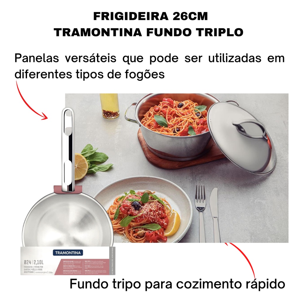 Frigideira Tramontina Cooktop Fogão Indução Aço Inox Fundo Triplo 24cm Allegra
