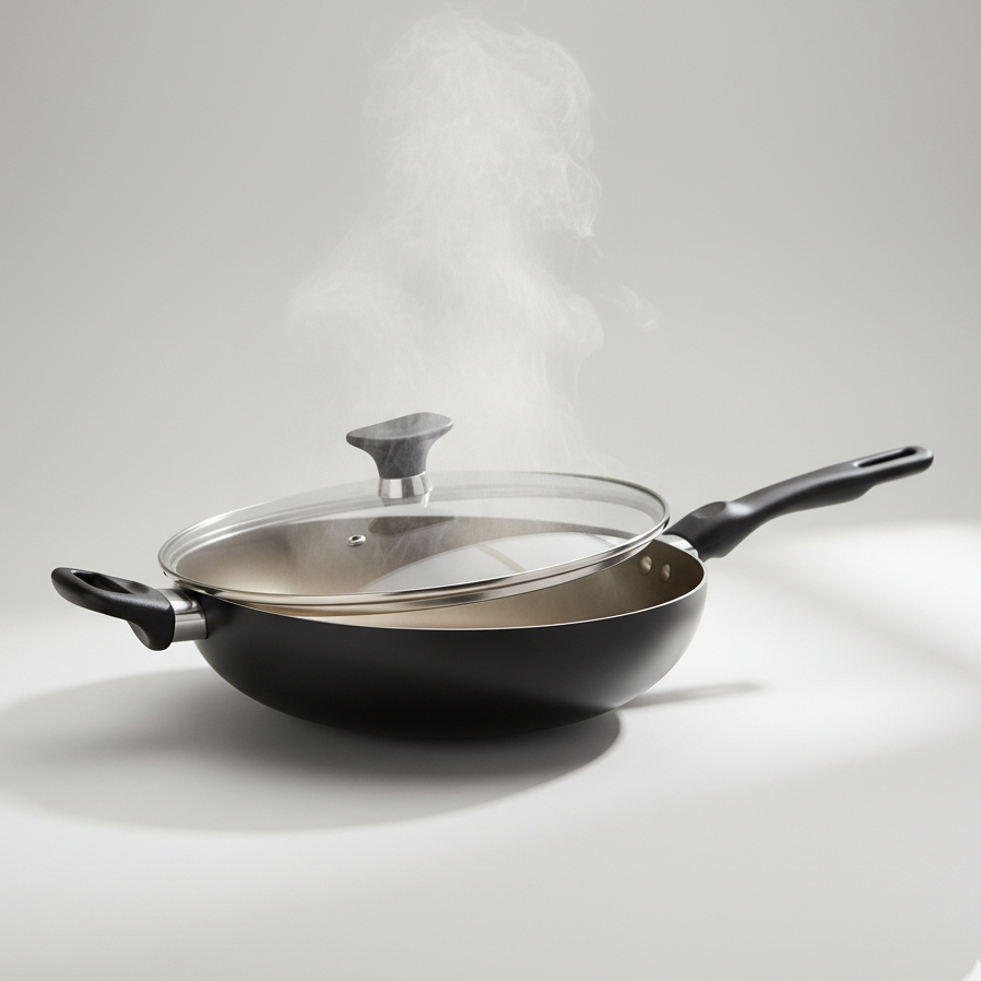 Frigideira Wok Antiaderente 24cm Tampa de Vidro Profissional Teflon Panela Grande Cozinha
