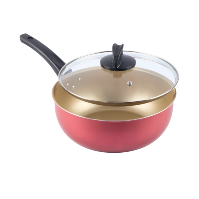Frigideira Wok Antiaderente Tampa De Vidro 24Cm Cereja