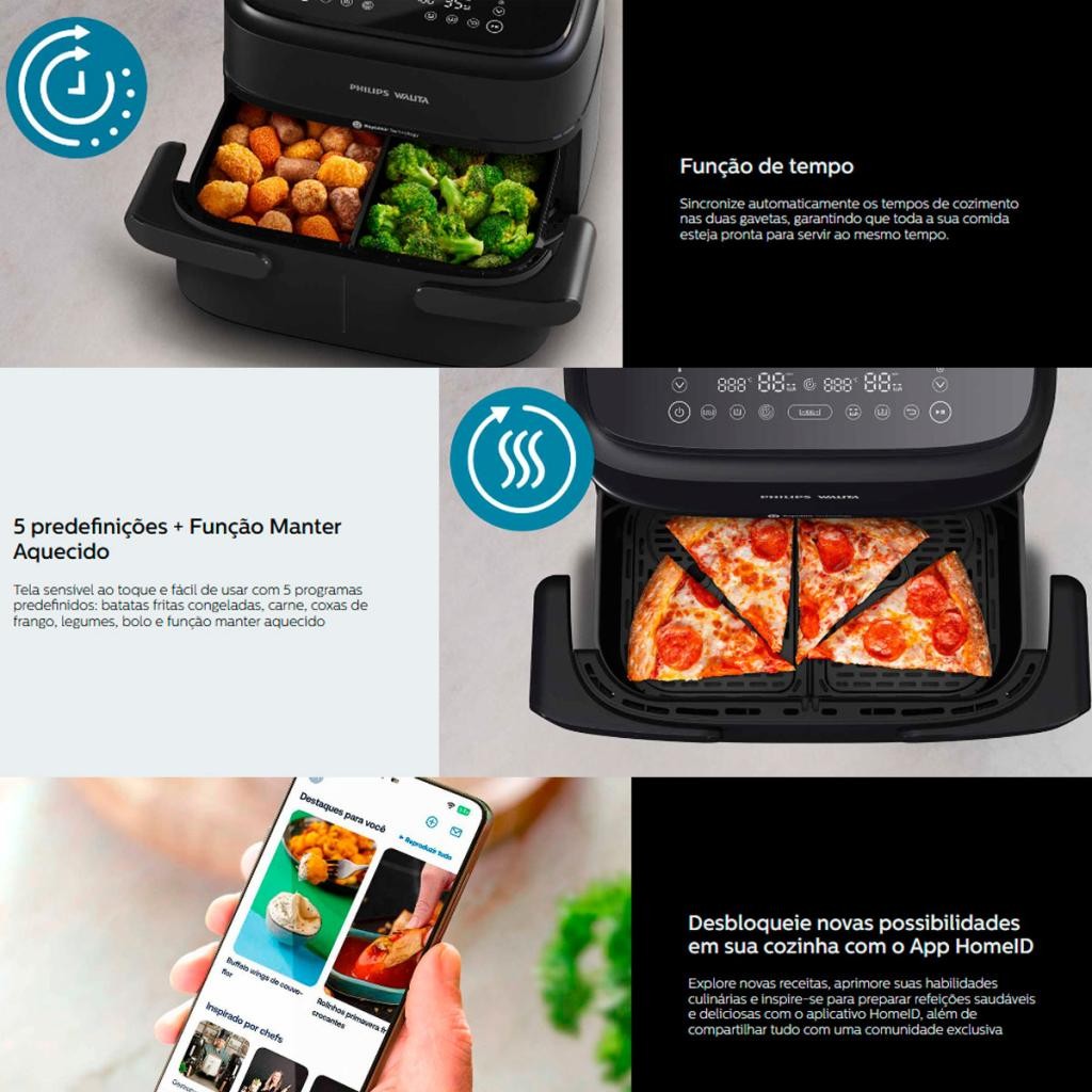 Fritadeira Airfryer Philips Walita Cesto Duplo Com Divisória Removível 7,1L 110v NA150/00