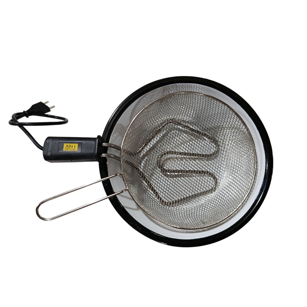 Fritadeira Elétrica a Óleo de 3,5L Litro Bipartido. Nossos diferenciais: - Base em inox - Cuba esmaltada ***Após o uso, retire a fritadeira da tomada, para evitar acidentes. Todos nossos produtos são fabricados com materiais aprovados pela vigilância sanitária. TODOS NOSSOS PEDIDOS ACOMPANHAM NOTA FISCAL. Conteúdo da embalagem: 1X CABO RESISTÊNCIA SEM TERMOSTATO 1X CUBA ESMALTADA 1X CESTO ARAMADO 1X BASE DE INOX Informações: Peso (g):1,483 Pontência (W): 1500 watts -------------------------- Base Altura (cm): 13 Diâmetro Interno (cm): 28,5 Peso (g):305 ----------------------- Cuba Altura (cm): 10 Diâmetro Interno (cm): 27 Peso (g):365 ------------------------ Cesto Altura (cm): 10 Diâmetro Interno (cm): 24 Comprimento (cm):40 Peso (g):206 ------------------------- Resistência Altura (cm): 13 Comprimento (cm):32 Peso (g):270