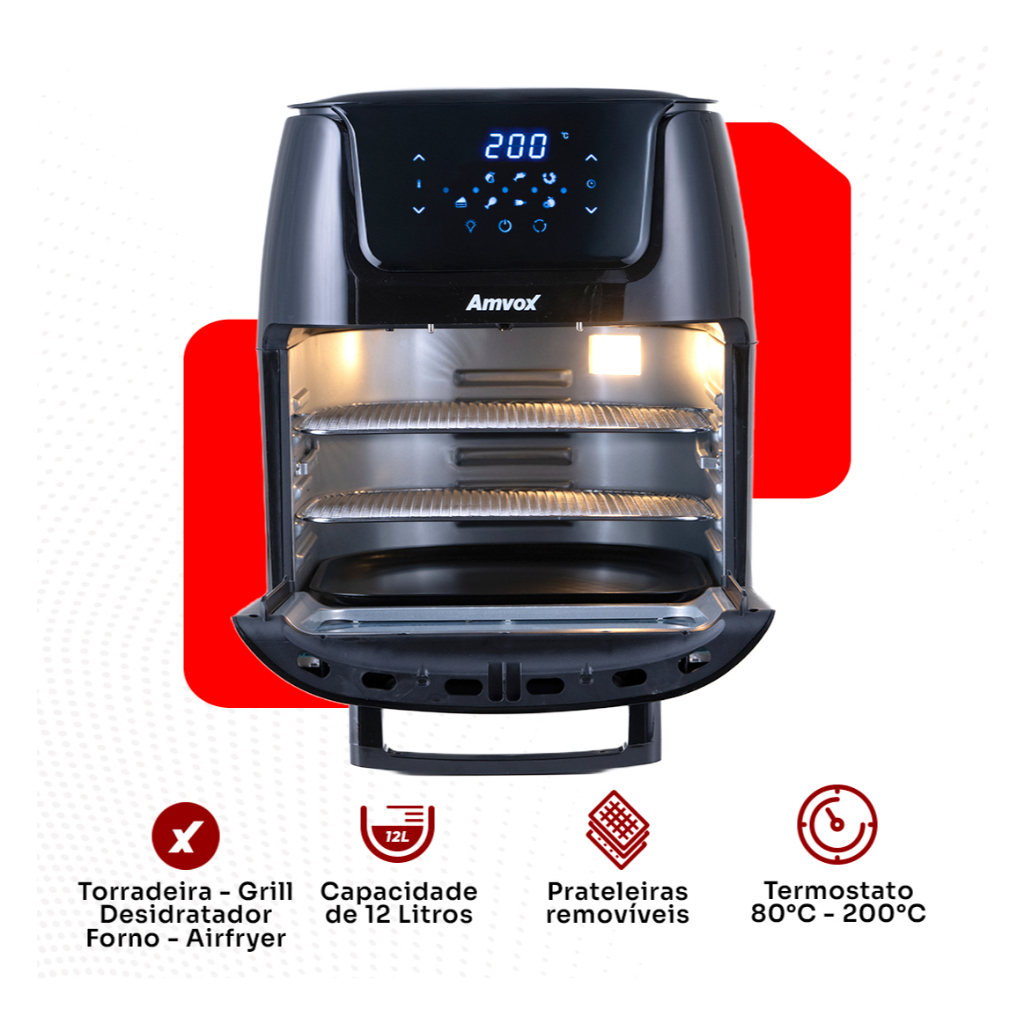 | Fritadeira Elétrica Oven Amvox 12l 3 Em 1 1700w Digital Preto 220v este produto | R$ 339,99 | 32% | 4.5/5 | — |