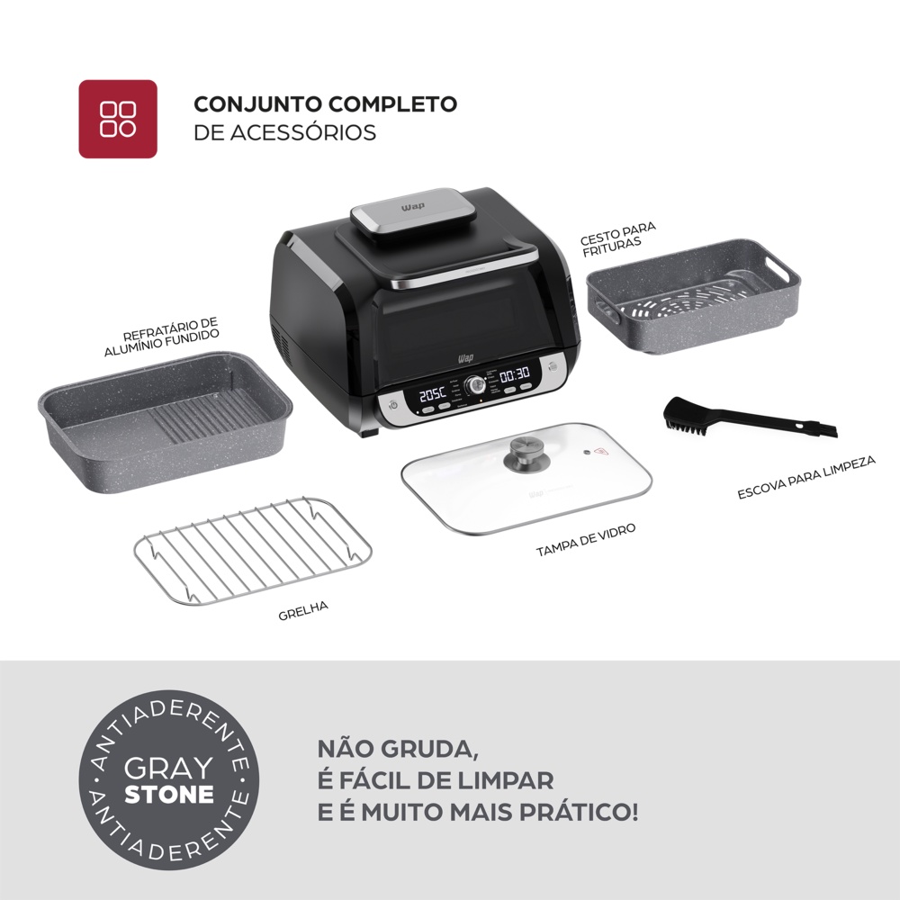 Fritadeira Elétrica Sem Óleo Churrasqueira Air Fryer 10l 1700w Wap Airfry Barbecue Digital 12 Em 1