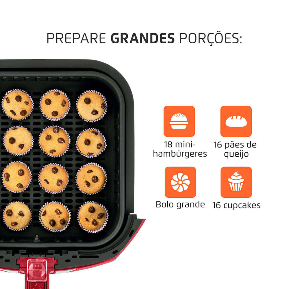 A família de Air Fryers Mondial está sempre crescendo e a AFN-60-RI, com capacidade de 6 litros, é a opção perfeita para receitas robustas, saborosas e que ficam prontas em poucos minutos! A alta potência aliada à tecnologia de Circulação de Ar Quente proporcionam mais agilidade e eficiência nos preparos. Além disso, por não precisar de óleo ou manteiga, a fritadeira a ar permite uma rotina alimentar com mais sabor e saúde. O cesto é quadrado e removível para acomodar melhor os alimentos e assar por igual. Saiba mais sobre a AFN-60-RI: PRATICIDADE + RAPIDEZ NA COZINHA: A tecnologia de circulação de ar quente e a alta potência possibilitam rapidez no preparo das receitas e praticidade em sua rotina na cozinha. CAPACIDADE DE 6 LITROS + CESTO QUADRADO: Considerado o cesto com a maior área plana da categoria*, ele acomoda melhor os alimentos, permitindo assar e fritar por igual. *Comparativo realizado com todos os modelos de Air Fryer tipo original do mercado até Agosto/2022. ALIMENTAÇÃO + SAUDÁVEL: Por não precisar de óleo ou manteiga no preparo das receitas, a Air Fryer permite uma rotina alimentar com mais sabor e saúde. ANTIADERENTE: O cesto possui o antiaderente Duraflon, e os alimentos não grudam no fundo. FÁCIL DE LIMPAR: A limpeza da parte interna é fácil, pois a cuba e o cesto são removíveis e antiaderentes. TIMER DE 60 MINUTOS: Facilidade e comodidade de selecionar o tempo necessário de preparo das receitas. A função Timer proporciona a liberdade para você se dedicar a outras tarefas enquanto a Air Fryer trabalha para você. AVISO SONORO + DESLIGAMENTO AUTOMÁTICO: Após o tempo predefinido no Timer, há um aviso sonoro e a fritadeira desliga automaticamente. CONTROLE DE TEMPERATURA ATÉ 200°C: Permite a escolha da temperatura ideal para diferentes tipos de alimentos. MUITO ALÉM DE BATATA FRITA: A Air Fryer é versátil e permite que você prepare pratos que vão muito além da clássica batata frita. É possível preparar legumes, carnes, peixes, lasanha, pizzas, além de pratos doces, como pudim, bolo de chocolate e cookies. Use sua criatividade para fazer receitas deliciosas! UM ANO DE GARANTIA MONDIAL: A Mondial é a escolha de milhões de consumidores. Mondial, a escolha inteligente!