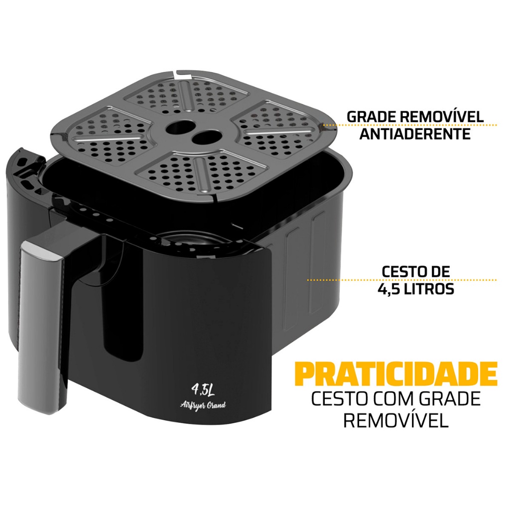Fritadeira Sem Óleo Elétrica Air Fryer 4,5L - 1500w Preto Oz