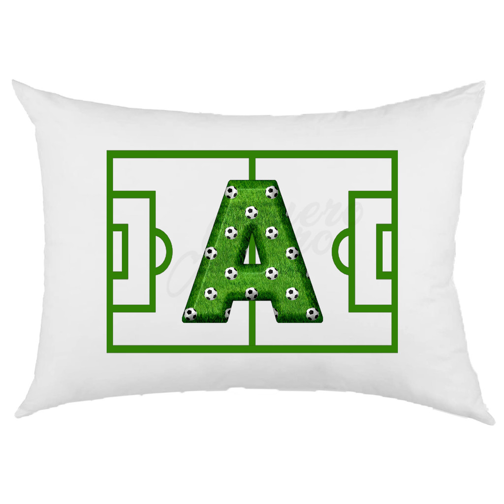 Fronha Capa de Travesseiro Futebol Campo Bola Letra Alfabeto A-Z Luxo Crehe Zíper