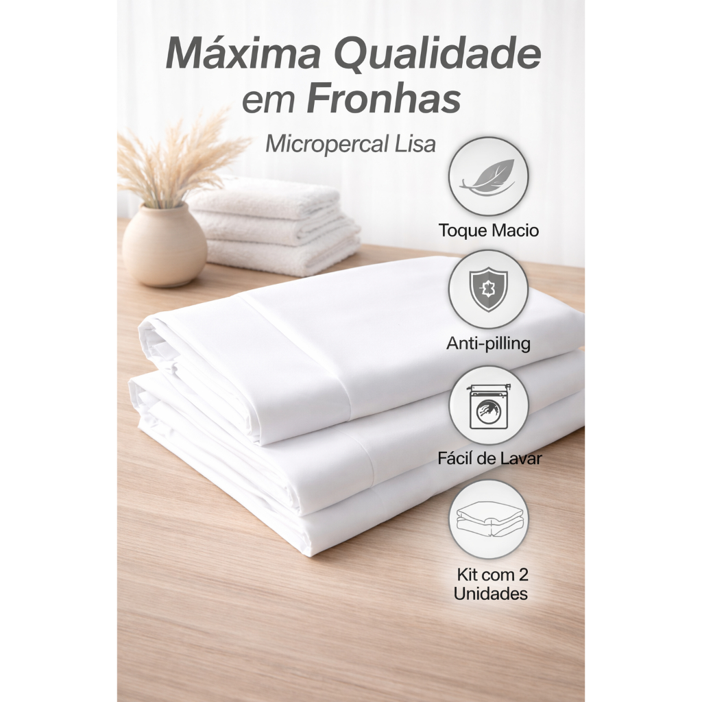 Fronha Micropercal 50x70 Branca Lisa Toque Macio Premium para Travesseiro