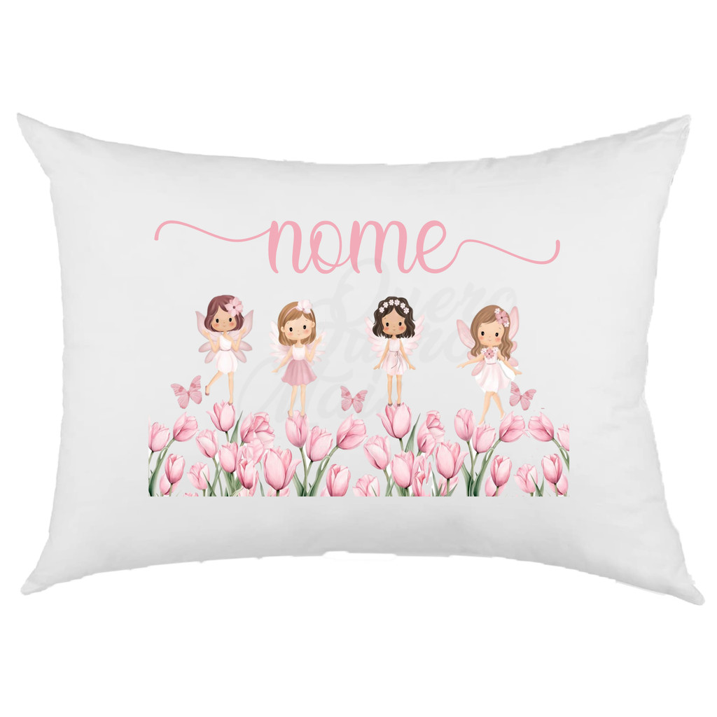Fronha Travesseiro Personalizada com Nome Flores Fada Candy Collor Tulipa Rosa Zíper Luxo Presente 50x70