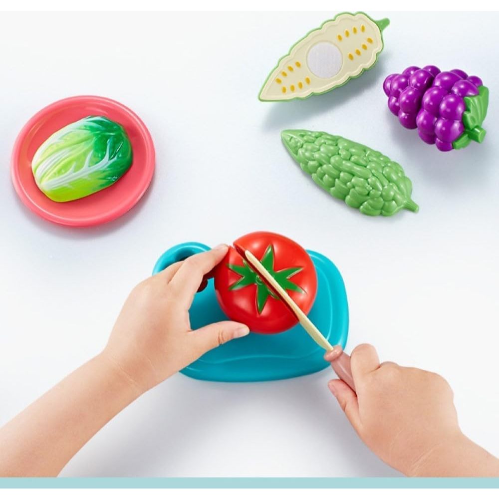 DESCRIÇÃO A criança explora novas experiências através do brincar, estimulando a imaginação, desenvolvimento intelectual, sensorial, emocional e estimula coordenação viso motora. Especificações: - Trabalha a concentração; - Estimula coordenação viso motora; - Estimula imaginação através do brincar; - Desenvolvimento intelectual, sensorial; - Idade recomendada: a partir dos 3 anos; - Produto seguro, certificado pelo INMETRO; - Contém o selo do INMETRO na embalagem; - Todos os materiais sem ftalatos, não-tóxico. ***Conteúdo abaixo de acordo com a escolha de compra:*** Conteúdo da embalagem no Kit Frutas: 9 peças do Kit de Comidinhas (6 frutinhas, 1 tabuazinha, 1 pratinho e 1 faquinha); Conteúdo da embalagem no Kit Legumes: 11 peças do Kit de Comidinhas (7 leguminhos, 2 pratinhos, 1 tabuazinha e 1 faquinha); Idade Recomendada: A partir de 3 anos; Composição/Material: Polímeros Plásticos.