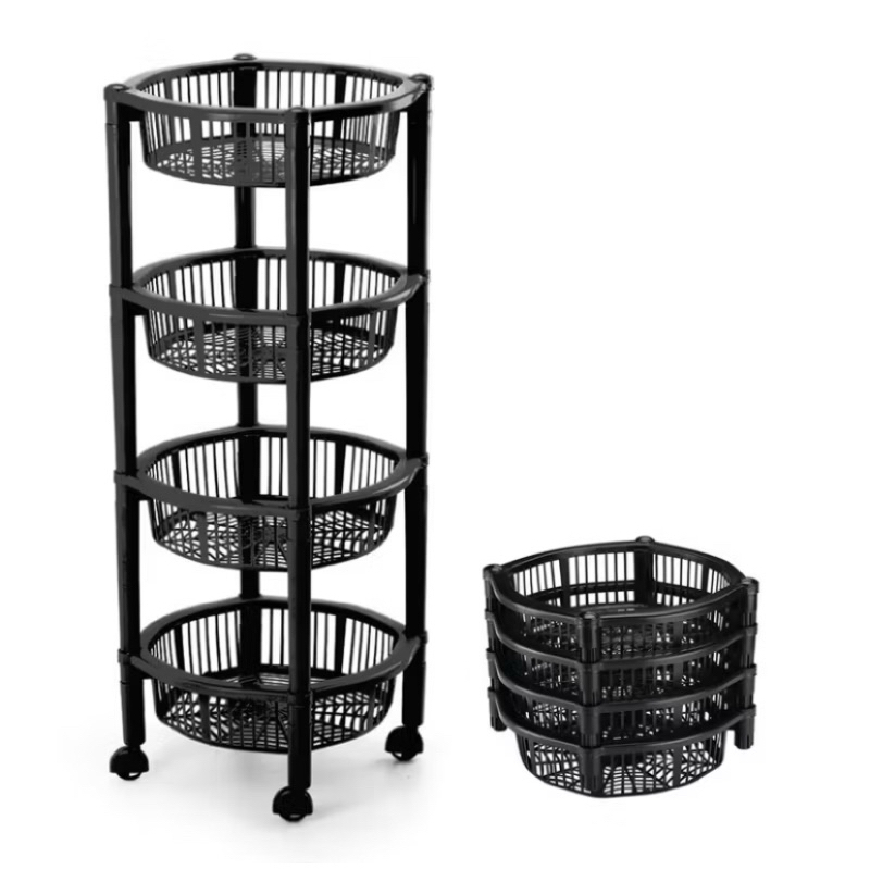 Fruteira 4 Andares com Rodinhas Alta Capacidade e Resistência Ideal / Frutas, Legumes e Organização