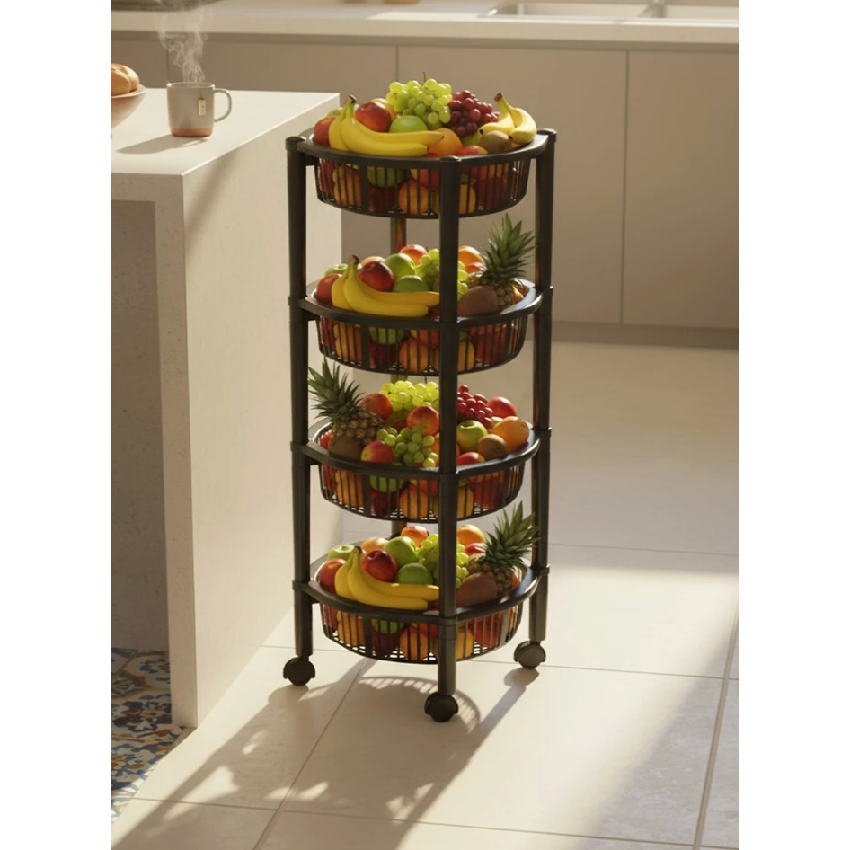 Fruteira Cesto Organizador 4 Andares Preta Empilhável