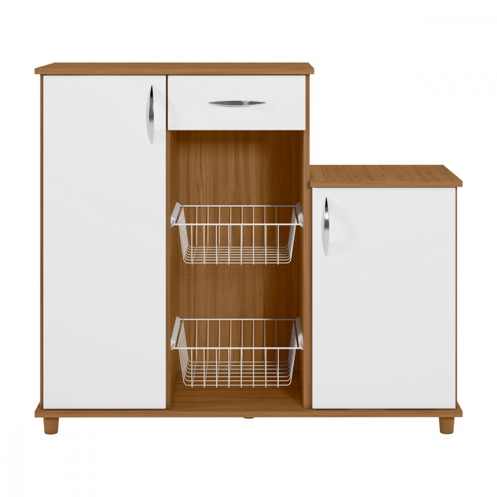 Transforme sua cozinha ou área de lazer com nosso elegante balcão fruteira! Com dois cestos, ele é perfeito para armazenar suas frutas e vegetais de forma prática e charmosa. Seu design moderno combina com qualquer decoração, e os cestos facilitam o acesso. Mantenha seus alimentos frescos e à mão! Ideal para quem ama cozinhar e receber amigos. Garanta já o seu e dê um toque especial à sua casa! Dimensões: Altura: 89 cm | Largura: 103 cm | Profundidade: 38 cm Características: - MDP 15 mm - Puxador ABS - Dobradiça de metal curva - Corrediças metálicas - 05 pés fixos de plástico na cor do produto - 2 cestos em aramado branco - Pintura UV Brilho - Acabamento brilho/fosco - Suporte de peso cesto: 2 kg - Suporte de peso geral: 40 kg - Garantia de 03 meses ** Imagens ilustrativas. Objetos não acompanham o produto. ** O produto é enviado desmontado. AVISO: Esclarecemos que a Opção Móveis se responsabilizará pela entrega dos produtos adquiridos até a porta de entrada (casas) ou portaria (prédios ou condomínios) do endereço indicado, ou seja: é de total responsabilidade do cliente a montagem, desmontagem e instalação do produto adquirido. Para evitar futuros desagrados ou imprevistos com a entrega, também é necessário que o cliente confira as dimensões do produto escolhido, antes de finalizar a compra, devendo certificar-se de que a mercadoria passará normalmente por elevador, porta, escada e corredor.