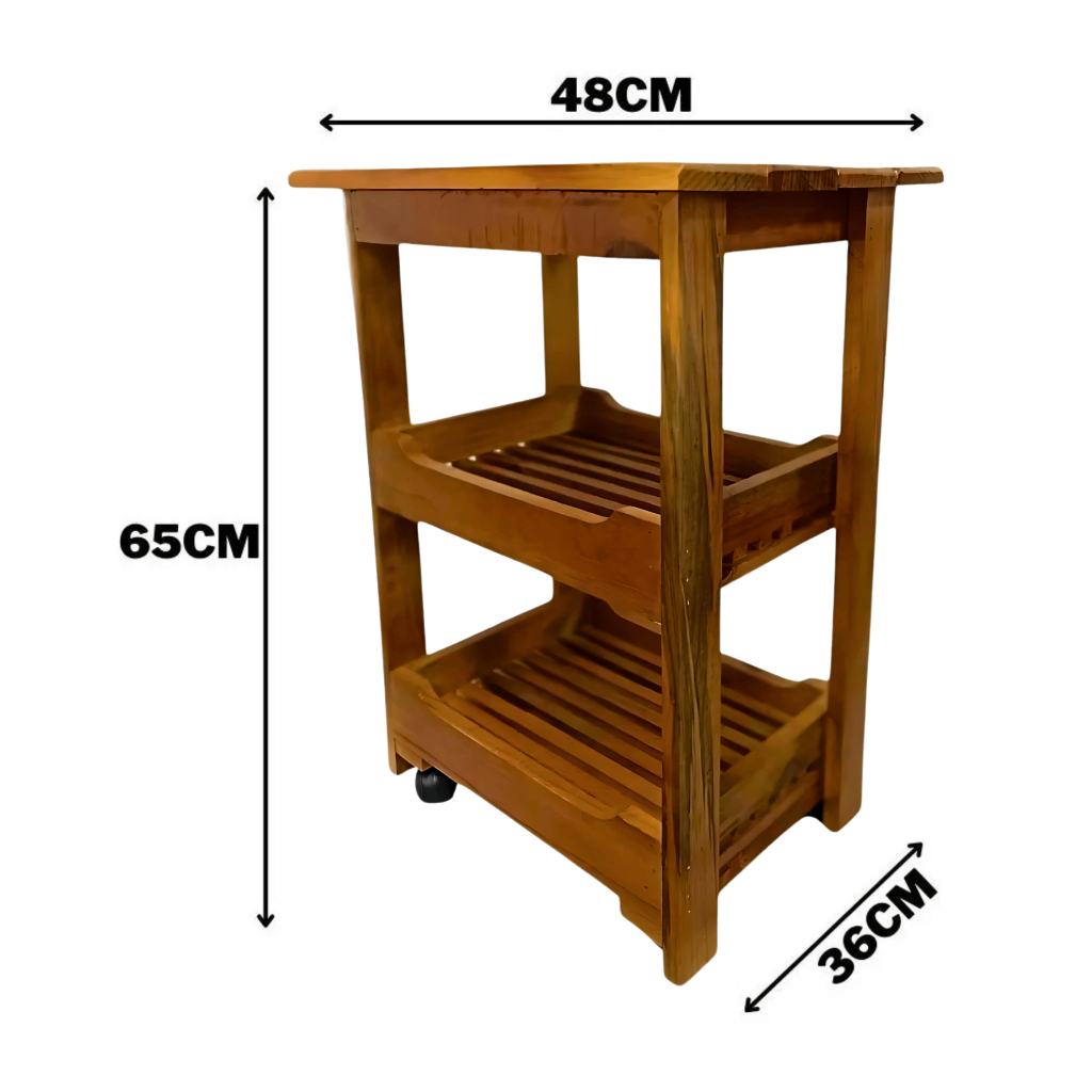 Fruteira em Madeira com Rodinhas – Prática, Compacta e Sofisticada Organize sua cozinha com mais charme e funcionalidade com a Fruteira de Madeira Vernizada Martinez. Com um design compacto e elegante, ela é perfeita para armazenar frutas, legumes e mantimentos, sem ocupar muito espaço. Nossa fruteira é 100% fabricada em madeira natural com acabamento em verniz, trazendo durabilidade e beleza para o seu ambiente. ✅ Benefícios: - Estrutura 100% madeira vernizada – mais resistência e acabamento sofisticado - 2 prateleiras espaçosas – ideal para organizar frutas, legumes e utensílios - Acompanha 4 rodinhas – fácil de movimentar e reposicionar - Design compacto – otimiza espaço em cozinhas, áreas de serviço e despensas - Produto funcional e decorativo – combina com diversos estilos de ambiente 📏 Especificações: - Altura: 65 cm - Largura: 48 cm - Profundidade: 36 cm - Prateleiras: 2 níveis - Acompanha: 4 rodinhas 📦 Conteúdo da Embalagem: - 1 Fruteira de Madeira Vernizada com 2 Prateleiras - 4 Rodinhas