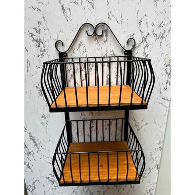 Fruteira de Parede 2 andares Rústica ferro e madeira
