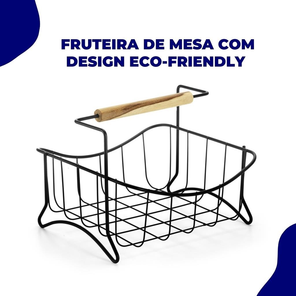 Fruteira Mesa Centro Organizador Frutas Suporte Cozinha Bancada Aramada Preto Eco Preto Arthi Adicione um toque moderno e funcional a sua cozinha com a fruteira central Aramada Preto da Arthi. Esta peca elegante e pratica e perfeita para adornar sua mesa ou bancada, mantendo suas frutas organizadas e acessiveis. Com seu design aramado preto, esta fruteira nao so acrescenta um toque de estilo contemporaneo ao ambiente, mas tambem oferece durabilidade e facilidade de limpeza. Seja para uso diario ou para impressionar seus convidados em ocasioes especiais, esta fruteira e uma adicao indispensavel para qualquer cozinha moderna. Seu suporte em maderna da um toque todo especial e modernidade para essa peca super funcional e linda. Medidas: . Comprimento: 26cm . Largura: 25,2cm . Altura: 19,5cm Conteudo Da Embalagem: . 01 Fruteira De Mesa Importante: Garantia de 3 Meses. Valor Unitario. Imagens Meramente Ilustrativas. Nao nos responsabilizamos pelo mau uso do produto.