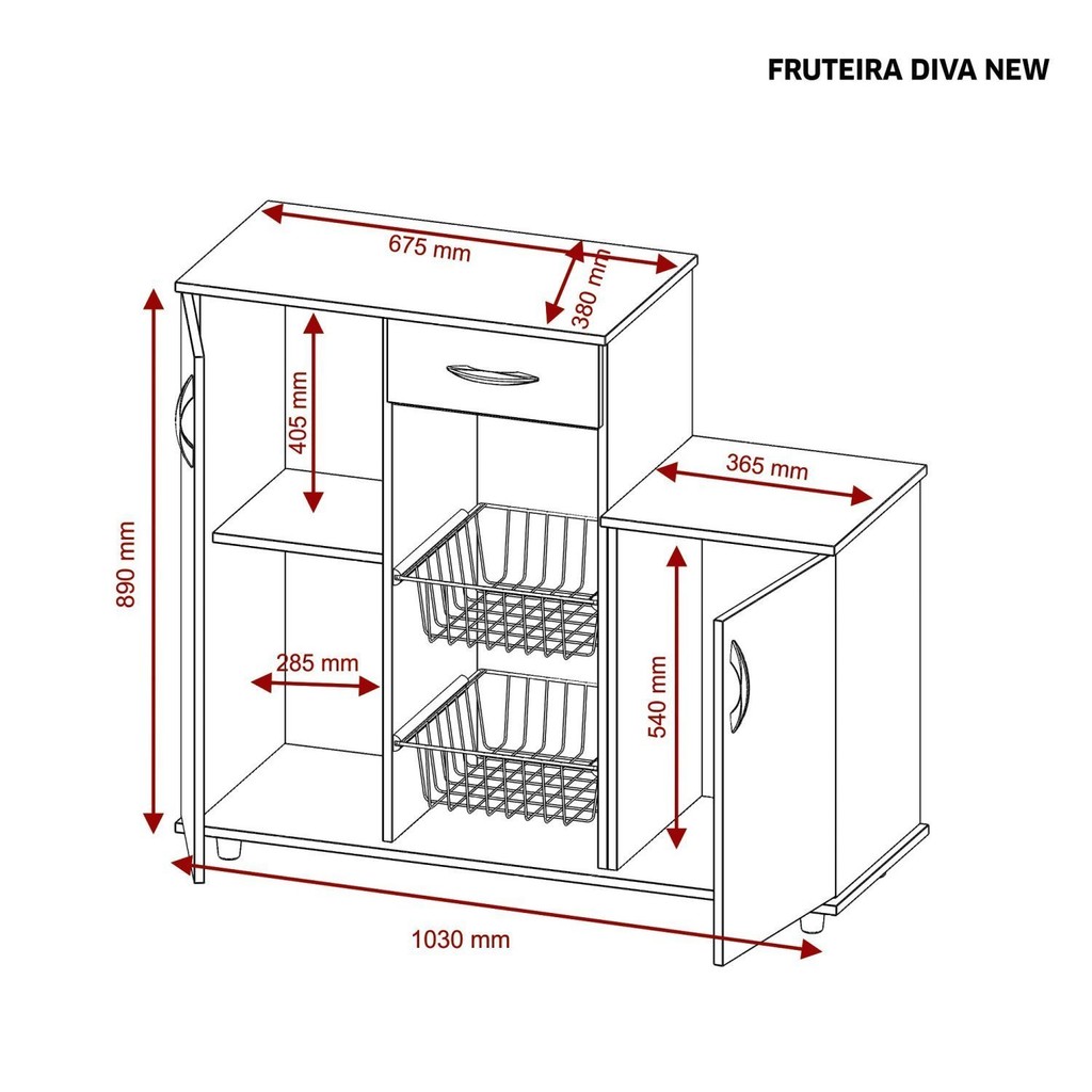 Fruteira Multiuso 2 Portas 1 Gaveta 2 Cestas Diva Freijó/Branco