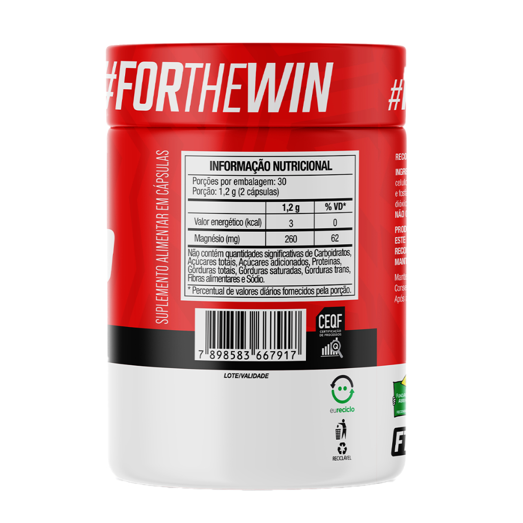 Descrição Completa do Produto Magnésio Dimalato 60 Cápsulas - FTW O que é / Para que serve O Magnésio Dimalato FTW é um suplemento alimentar em cápsulas que fornece magnésio na forma de dimalato de magnésio (dimagnésio malato). O magnésio é um mineral essencial envolvido em diversos processos metabólicos do organismo. Este produto é indicado para complementar a ingestão diária de magnésio, especialmente em dietas com necessidades específicas, conforme recomendação de profissional da saúde ou nutricionista. Ingredientes Dimagnésio malato, estabilizantes (celulose microcristalina e amido), antiumectantes (dióxido de silício e fosfato tricálcico). Ingredientes da cápsula: Celulose, opacificante dióxido de titânio e água potável filtrada. NÃO CONTÉM GLÚTEN. NÃO CONTÉM AÇÚCAR. Apresentação Pote com 60g Porção: 2 cápsulas ao dia Rendimento: Cerca de 30 porções. Como Consumir Ingerir 2 cápsulas ao dia, preferencialmente com líquidos, ou conforme a orientação de um profissional habilitado. Informações Adicionais Produto indicado para adultos maiores de 19 anos; Este produto não deve ser consumido por gestantes, lactantes ou crianças, salvo orientação profissional; Mantenha fora do alcance de crianças; Não exceder a recomendação diária de consumo indicada na embalagem; Conservar em local seco e fresco, ao abrigo da luz e umidade; Após aberto consumir em até 60 dias; Este produto não é um medicamento. Certificação Suplemento alimentar dispensado de registro conforme Resolução RDC nº 240/2018. Alegações baseadas no Anexo V da IN 28 Anvisa.