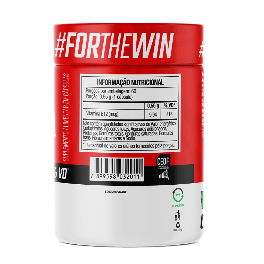 A Vitamina B12 FTW é um suplemento alimentar essencial para a produção de energia, manutenção da saúde neurológica e formação de glóbulos vermelhos. Contendo metilcobalamina, uma forma ativa da vitamina, este suplemento garante alta biodisponibilidade para o organismo. Ingredientes Metilcobalamina, estabilizantes celulose microcristalina e amido, antiumectante dióxido de silício. Ingredientes da cápsula: celulose, opacificante dióxido de titânio e água potável filtrada. Sugestão de Uso Ingerir 1 cápsula ao dia, ou conforme recomendação de um profissional da saúde. Apresentação Frasco contendo 60 cápsulas. Informações Adicionais Não contém glúten Produto indicado para o grupo populacional ≥ 19 anos Este produto não é um medicamento Após aberto, consumir em até 60 dias Certificação Suplemento alimentar dispensado de registro conforme Resolução RDC nº 240/2018.Alegações baseadas no Anexo V da IN 28 Anvisa.
