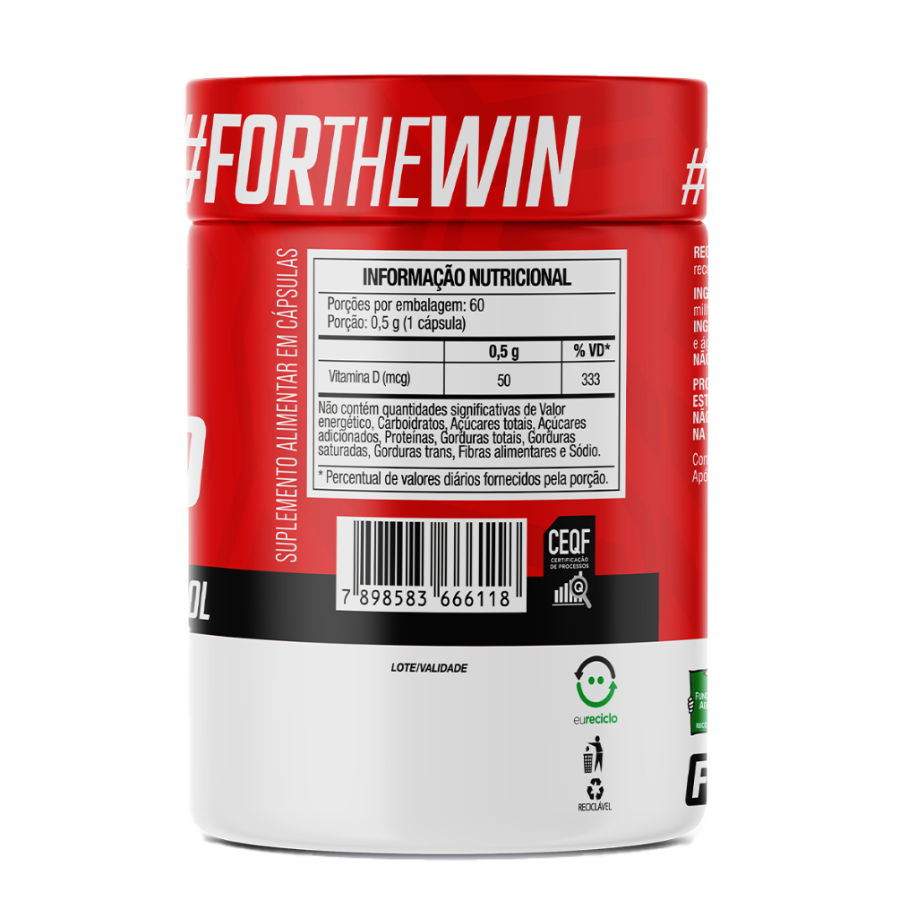 A Vitamina D3 2.000 UI FTW é um suplemento alimentar em cápsulas à base de colecalciferol (vitamina D). É destinada ao grupo populacional ≥ 19 anos e indicada como fonte complementar de vitamina D, especialmente quando a ingestão por meio da alimentação estiver insuficiente, conforme recomendação de nutricionista ou médico. Ingredientes Vitamina D3 (colecalciferol), estabilizantes amido de milho e celulose microcristalina, antiumectante dióxido de silício. Ingredientes da cápsula: Celulose, opacificante dióxido de titânio e água potável filtrada. NÃO CONTÉM GLÚTEN. Apresentação Pote com 60 Cápsulas Porção: 1 cápsula ao dia Rendimento: Cerca de 60 porções. Como Consumir Ingerir 1 cápsula ao dia, ou conforme recomendação do nutricionista ou médico. Informações Adicionais Produto indicado para o grupo populacional ≥ 19 anos. Este produto não é um medicamento. Não exceder a recomendação diária de consumo indicada na embalagem. Este produto não deve ser consumido por gestantes, lactantes e crianças. Mantenha fora do alcance de crianças. Conservar ao abrigo da luz, calor e umidade. Após aberto, consumir em até 60 dias. Certificação Suplemento alimentar dispensado de registro conforme Resolução RDC nº 240/2018. Alegações baseadas no Anexo V da IN 28 Anvisa.