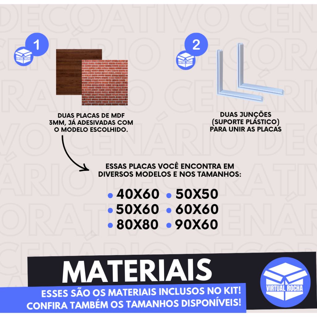 Sobre o produto: Dimensões: 50x50cm; 60x50cm; 60x60cm; 80x80cm Duas Placas de MDF 3mm; Acompanha duas junções para fixação fácil e prática; Ideal para ensaios fotográficos. Diferencial do nosso produto: Material durável e resistente, proporcionando longa vida útil; Instalação fácil e prática; Design moderno e criativo. Avisos e Cuidados: Limpeza apenas com pano seco ou levemente umedecido; Evite o uso de produtos químicos ou abrasivos; Guarde em local seco para preservar a qualidade do MDF. Envio Super Rápido! Para dúvidas, estamos à disposição no chat!