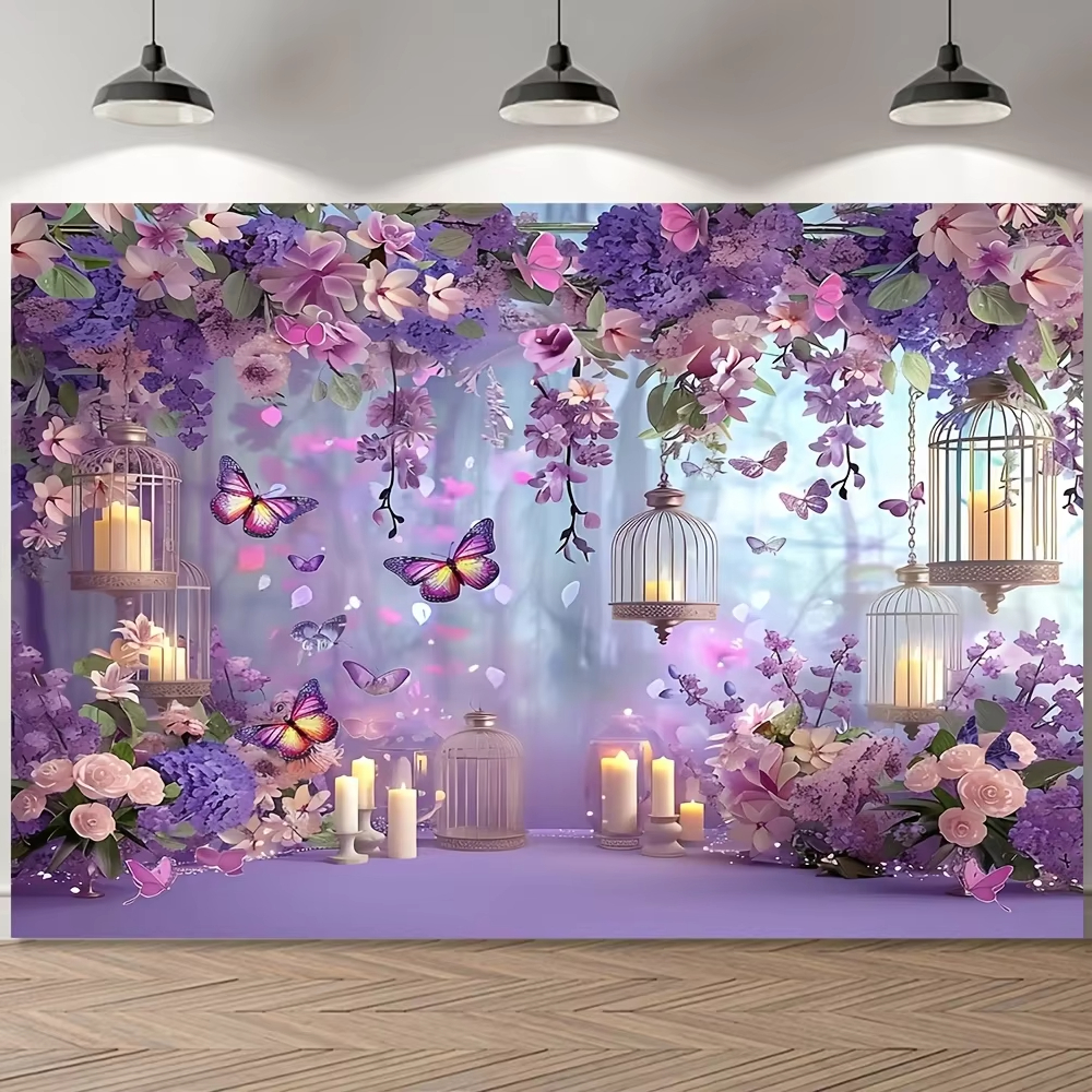 Fundo Fotográfico Borboletas 2,30x1,80 Painel Borboletas 3D em Tecido Sublimado Retangular Newborn