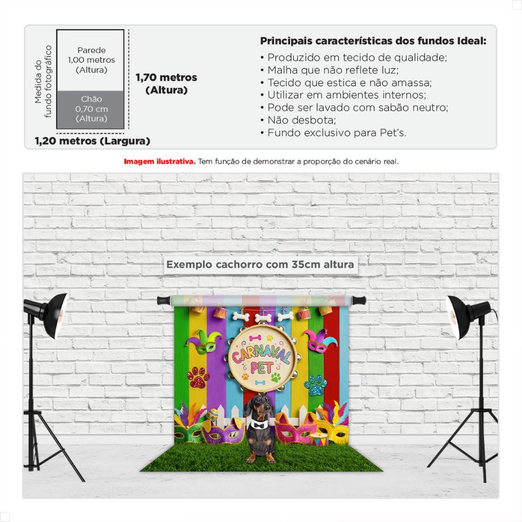 | Fundo Fotográfico Carnaval Pet 1,20x1,70m Cenário para Fotos Sublim... este produto | R$ 35,00 | 56% | 5.0/5 | — |