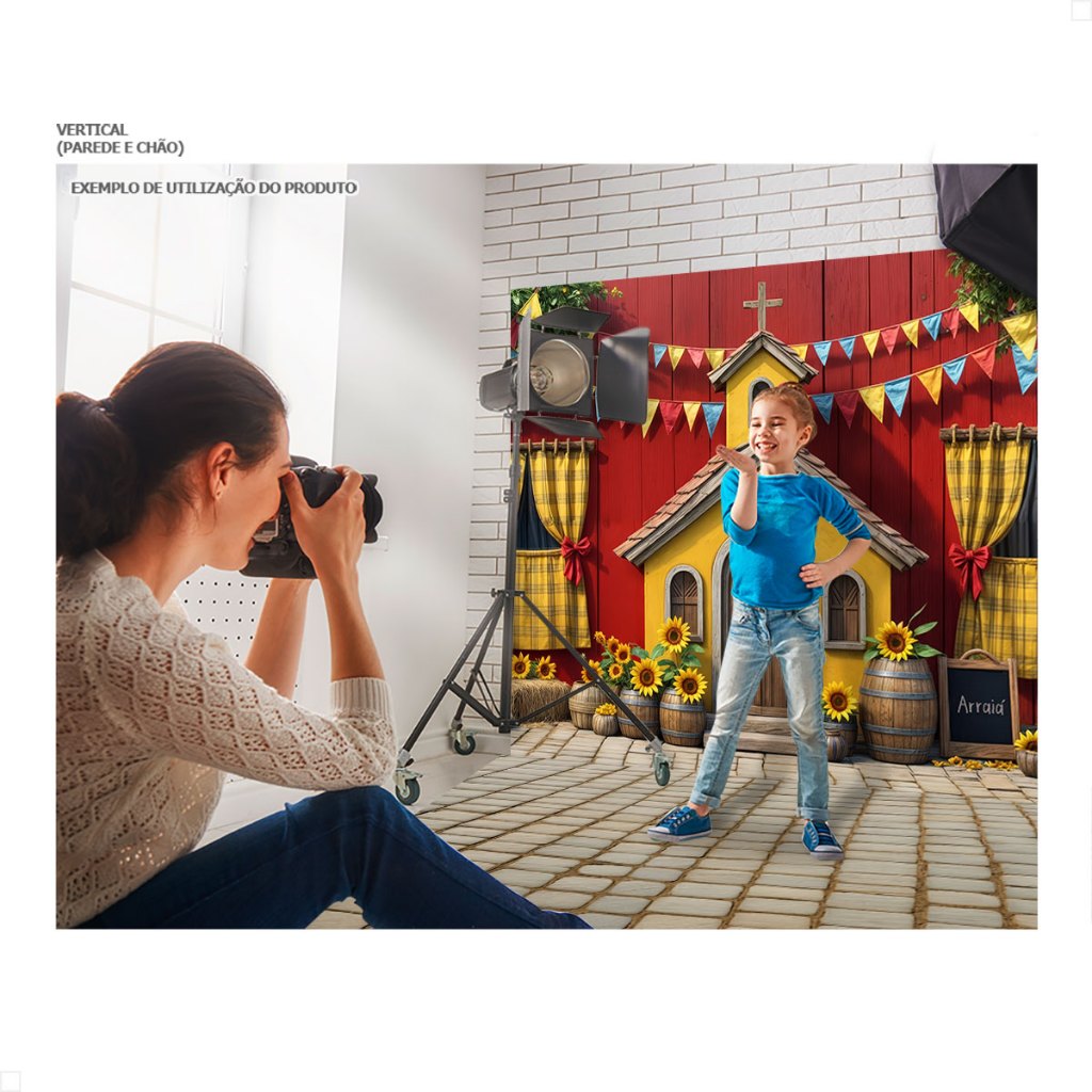 Fundo Fotográfico Festa Junina Cenário Igrejinha Junina Painel Tecido Sublimado - C-694