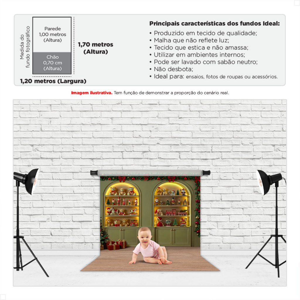 Todos os nossos Fundos Fotográficos Sublimados são confeccionados em tecido especial, com excelente acabamento e imagens nítidas que possibilitam fotos incríveis sem reflexos no resultado final. Por serem muito práticos, os fundos podem ser utilizados em estruturas como tripés (presos por garras) ou fixado em paredes e até mesmo placas de MDF com o auxílio de fita crepe ou dupla face (de formato largo, preferencialmente). Características: Tecido: Malha (estica e não amassa) Composição: 95% Poliéster + 5% elastano Gramatura: 140g m² Acabamento: Pode ser em overloque ou à laser, à depender da demanda. Ambos com acabamento perfeito que garantem sua durabilidade. ** Itens inclusos: 1 fundo fotográfico em tecido Malha ** Indicação de uso: Produção de fotos em estúdio fotográfico Informação complementar: As cores podem variar nas fotografias devido à qualidade da câmera fotográfica, ajustes/configurações da câmera, lente e iluminação do ambiente. Além disso, as configurações brilho e contraste do monitor ou celular onde a imagem está sendo visualizada, também podem dar a impressão das cores serem mais ou menos vivas, mais ou menos intensas. ** Todos os nossos produtos passam pelo processo de sublimação, sendo uma etapa onde passam por uma temperatura muito alta, podendo ter uma pequena variação em seu tamanho de até 5cm.** Nossos fundos fotográficos têm uma qualidade incomparável e é simplesmente incrível! Nosso tecido é maravilhoso, proporciona um toque suave e sem marcas de dobras, as cores são bem vivas e a nitidez da resolução incrível. Praticidade e economia de espaço, podem ser lavados, dobrados, guardados e é só esticar e arrasar nas fotografias. Possui acabamento impecável, não desbota e o caimento é perfeito! Uma combinação de qualidades especiais.