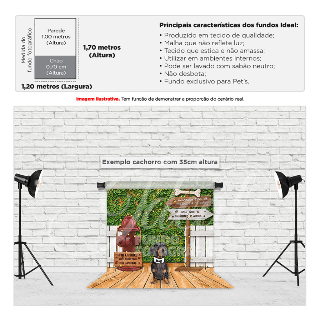 Todos os nossos Fundos Fotográficos Sublimados são confeccionados em tecido especial, com excelente acabamento e imagens nítidas que possibilitam fotos incríveis sem reflexos no resultado final. Por serem muito práticos, os fundos podem ser utilizados em estruturas como tripés (presos por garras) ou fixado em paredes e até mesmo placas de MDF com o auxílio de fita crepe ou dupla face (de formato largo, preferencialmente). Características: Tecido: Malha (estica e não amassa) Composição: 95% Poliéster + 5% elastano Gramatura: 140g m² Acabamento: Pode ser em overloque ou à laser, à depender da demanda. Ambos com acabamento perfeito que garantem sua durabilidade. ** Itens inclusos: 1 fundo fotográfico em tecido Malha ** Indicação de uso: Produção de fotos em estúdio fotográfico Informação complementar: As cores podem variar nas fotografias devido à qualidade da câmera fotográfica, ajustes/configurações da câmera, lente e iluminação do ambiente. Além disso, as configurações brilho e contraste do monitor ou celular onde a imagem está sendo visualizada, também podem dar a impressão das cores serem mais ou menos vivas, mais ou menos intensas. ** Todos os nossos produtos passam pelo processo de sublimação, sendo uma etapa onde passam por uma temperatura muito alta, podendo ter uma pequena variação em seu tamanho de até 5cm.** Nossos fundos fotográficos têm uma qualidade incomparável e é simplesmente incrível! Nosso tecido é maravilhoso, proporciona um toque suave e sem marcas de dobras, as cores são bem vivas e a nitidez da resolução incrível. Praticidade e economia de espaço, podem ser lavados, dobrados, guardados e é só esticar e arrasar nas fotografias. Possui acabamento impecável, não desbota e o caimento é perfeito! Uma combinação de qualidades especiais.