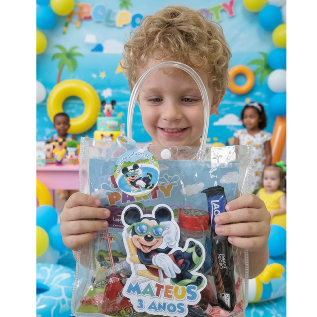 Fundo para sacola transparente + tag com correntinha e adesivo com nome Personalizado - SACOLA NÃO ACOMPANHA