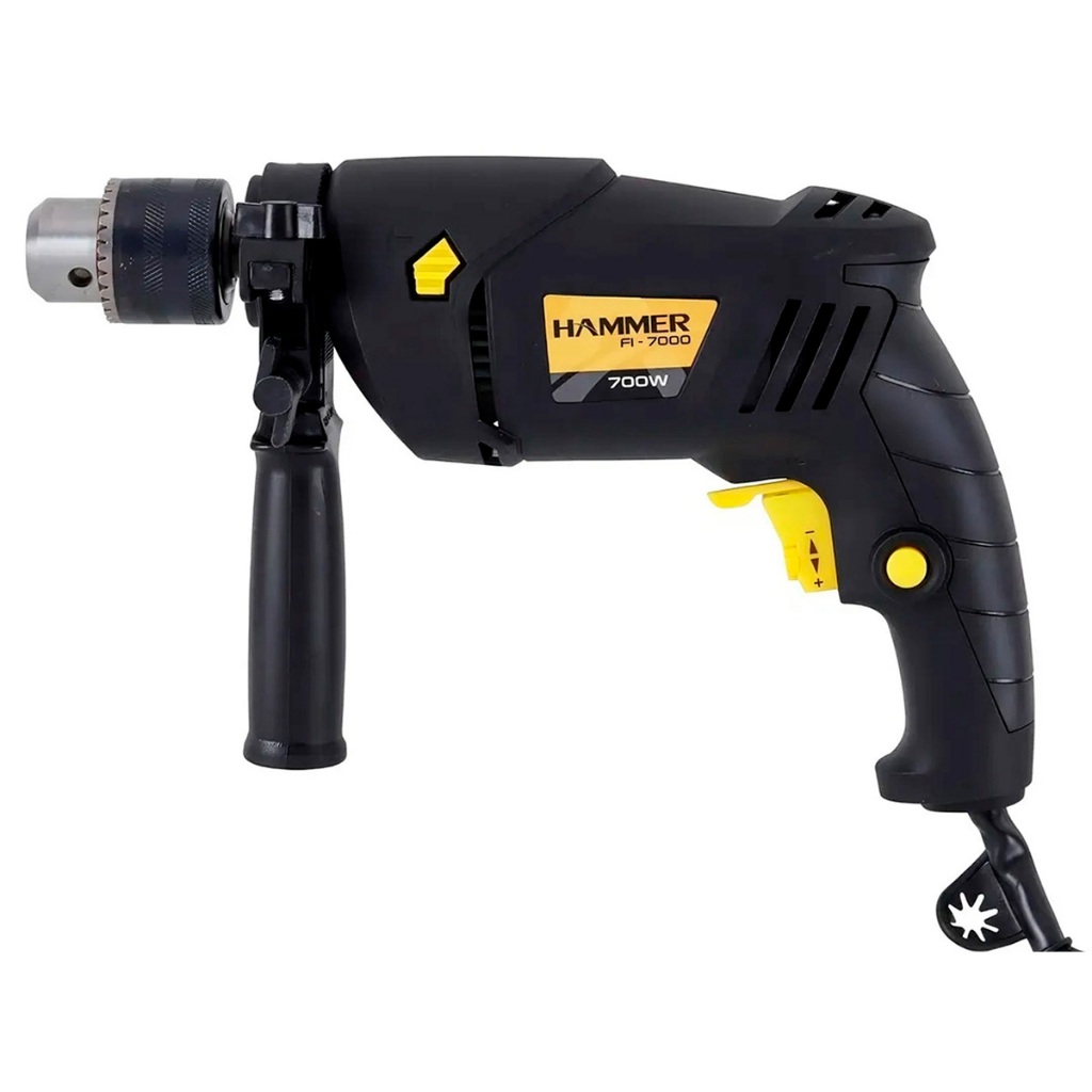 Distribuído por Ismafer Ferramentas Kit composto por: 01 - FURADEIRA DE IMPACTO 1/2" 13MM GYFI7000 700W HAMMER 01 - JOGO DE BROCAS BITS E BUCHAS COM 300 PEÇAS Descrição: FURADEIRA DE IMPACTO 1/2" 13MM GYFI7000 700W HAMMER A Furadeira de Impacto 1/2" Hammer GYFI7000 combina potência e versatilidade para atender desde pequenos reparos até trabalhos mais exigentes. Equipada com motor de 700W, oferece alto desempenho em diferentes tipos de materiais. Seu mandril de 13mm permite o uso de diversas brocas, garantindo praticidade no dia a dia. Compacta, ergonômica e robusta, é uma ferramenta essencial para quem busca eficiência e durabilidade. VANTAGENS: - Versatilidade: Compatível com brocas de madeira, metal, concreto e plástico, permitindo múltiplas aplicações. - Praticidade: Possui botão de trava para uso contínuo e velocidade variável com função reversível, garantindo maior controle. - Eficiência: Função impacto ideal para perfurações em superfícies rígidas, como concreto e alvenaria. USOS INDICADOS: - Perfurações em paredes de tijolos, blocos de concreto e alvenaria em geral. - Trabalhos de manutenção, construção e reformas. - Serviços domésticos e profissionais que exigem potência e precisão. FICHA TÉCNICA: - Mandril: 1/2" (13mm) - Potência: 700W - Velocidade: 2800 rpm - Funções: Impacto, velocidade variável e reversível - Recursos adicionais: Botão de trava para uso contínuo Modelo: GYFI7000 Marca: Hammer + JOGO DE BROCAS BITS E BUCHAS COM 300 PEÇAS O Jogo de brocas bits e buchas com 300 peças é ideal para uso doméstico e hobby, conta com as brocas e bits e buchas com as medidas mais comuns. As Broca de concreto são feita de aço carbono com uma placa de metal duro feita de material VK8, brocas para metal de aço rápido (HSS), brocas para madeira são de aço-carbono. Bits de aço cromo vanádio, instrumentos embalados em caixa de plástico. COMPÕE O JOGO: - 5 Bocas para concreto: 4, 5, 6, 8 e 10 mm - 7 Brocas para metal: 2, 3, 4, 5, 6, 8 e 10 mm - 5 Brocas para madeira: 4, 5, 6, 8 e 10 mm - 1 Prolongador - 2 Bits fenda - 4 Bits phillips - 120 Buchas 4mm - 65 Buchas 5mm - 50 Buchas 6mm - 25 Buchas 8mm - 16 Buchas 10m Garantia: 90 Dias (Fabricante) SKU: KIT12650_23836 (220v) Distribuído por Ismafer Ferramentas