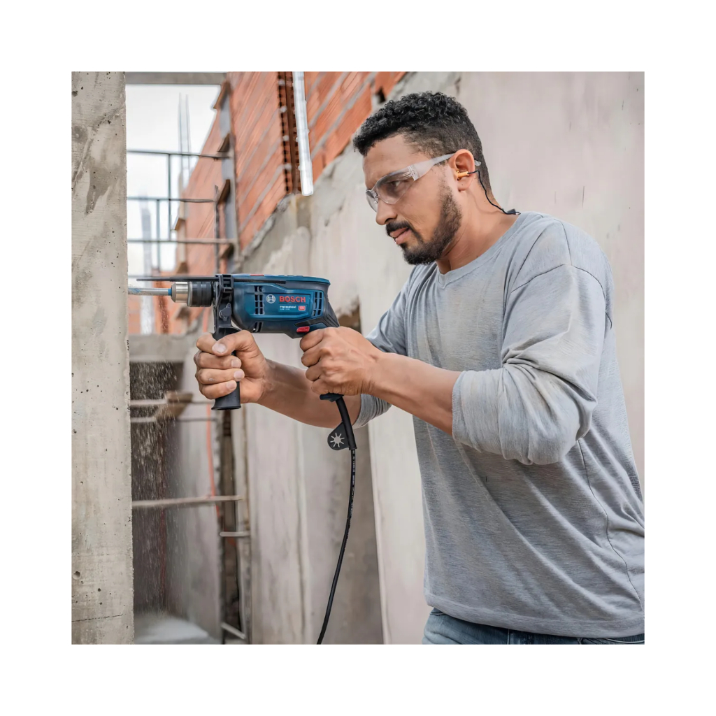 A furadeira de impacto Bosch GSB 13 RE Potente, robusta e durável, tem potência equivalente a uma ferramenta de 750W! Conta com menor vibração e menos ruído, além de uma carcaça reforçada de alta qualidade que aumenta a vida útil da ferramenta. É indicada para perfuração em concreto, alvenaria, madeira e metal com e sem impacto. Ideal para pedreiros, marceneiros, carpinteiros, instaladores em geral, vidraceiros, oficinas de manutenção, serralheiros, eletricistas e calheiros. A furadeira de impacto Bosch GSB 13 RE acompanha: 1 manual de instruções, 1 chave de mandril, 1 empunhadeira auxiliar, 1 limitador de profundidade. Garantia 2 anos Bosch + 1 ano adicional fazendo o cadastro no aplicativo BeConnected.